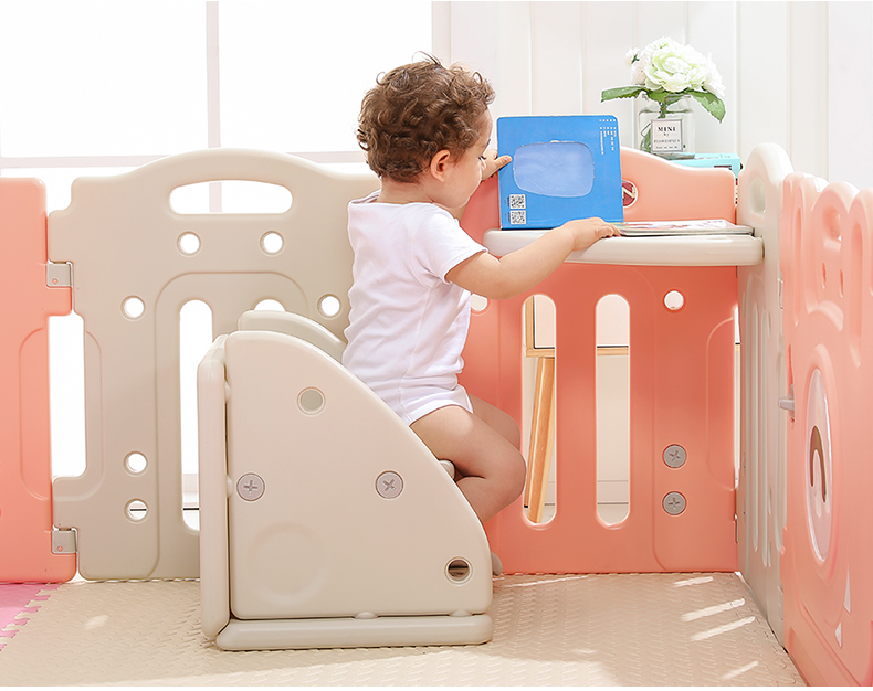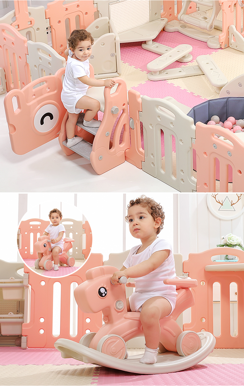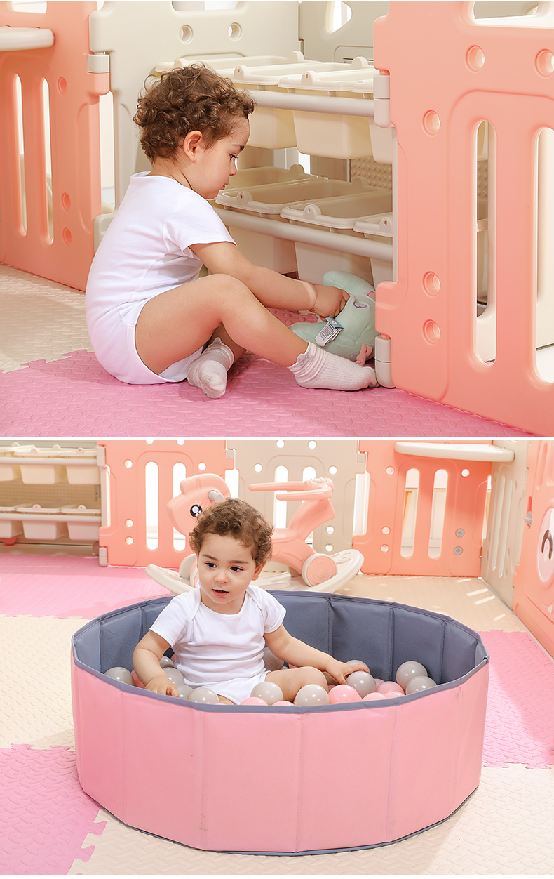 Jingjia Children's Playpen Indoor Household Baby Tour Playpen Small Baby Toddler Safety Fence Crawl Pad Safety 9m2 - Twilight Pink/Package B