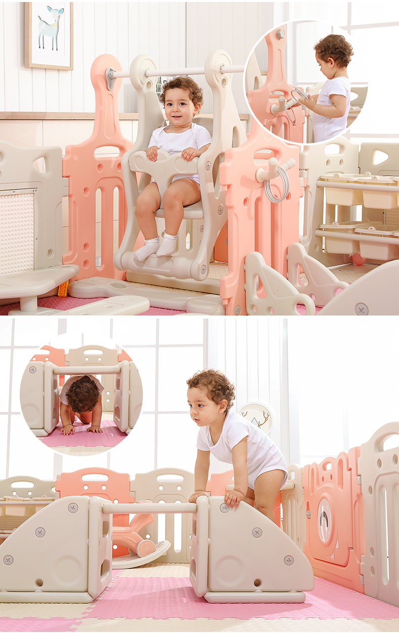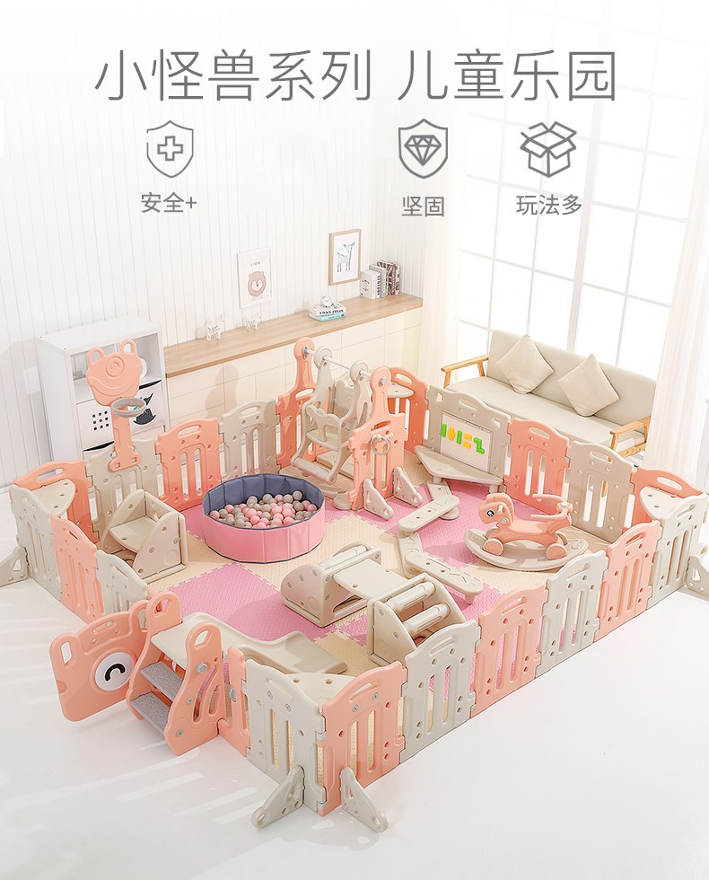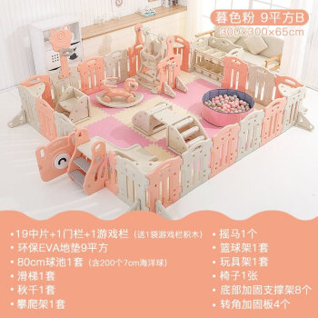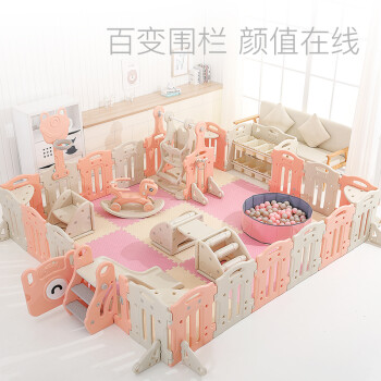 Jingjia Children's Playpen Indoor Household Baby Tour Playpen Small Baby Toddler Safety Fence Crawl Pad Safety 9 square meters - Twilight Pink/Package B [Image Price Brand Quotation]-