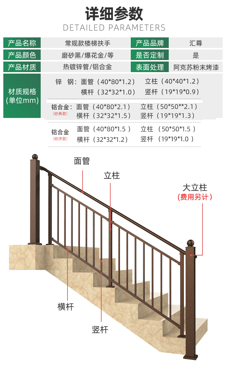Huizun Classic Customized Balcony Safety Zinc Steel Aluminum Alloy Staircase Handrails Extra Wide Household Indoor and Outdoor Duplex Building Staircase Handrails Iron Safety Oblique Pull Rod Style [Zinc Steel] [Image Price Brand Quotation]-