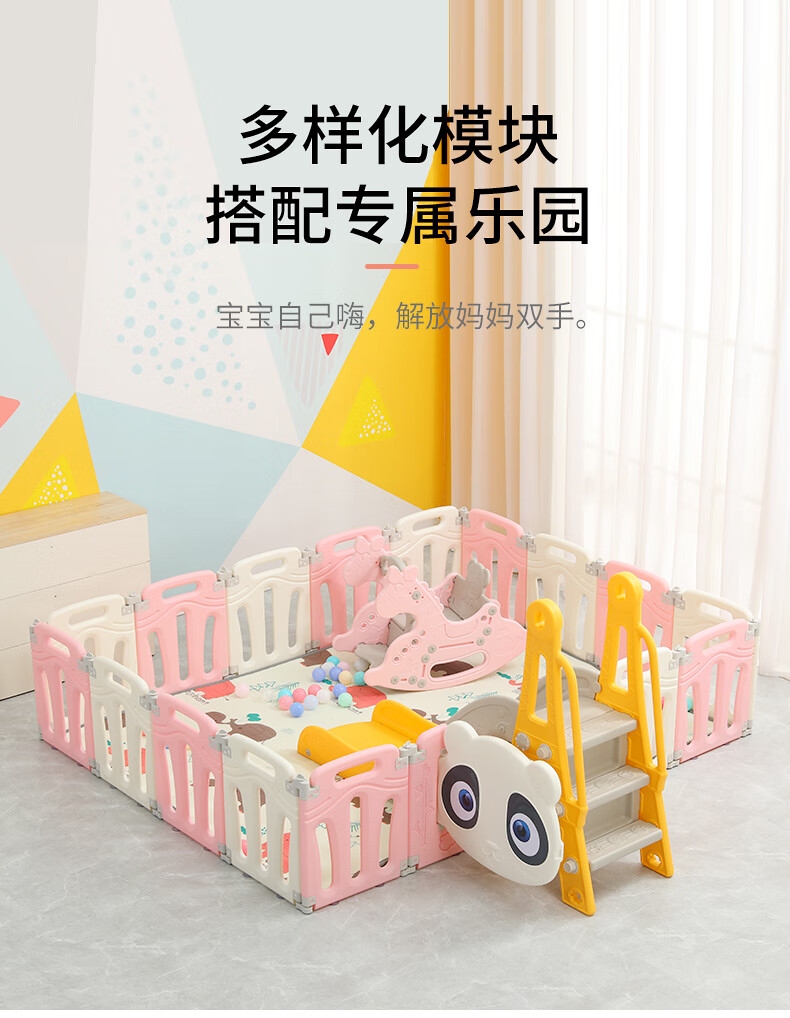 Lizhi Baby Indoor Baby Playpen Ground Children Folding Safety Indoor Crawling and Walking Home Living Room Indoor Powder (2 * 1.6 meters) Full Set [Image Price Brand Quotation]-
