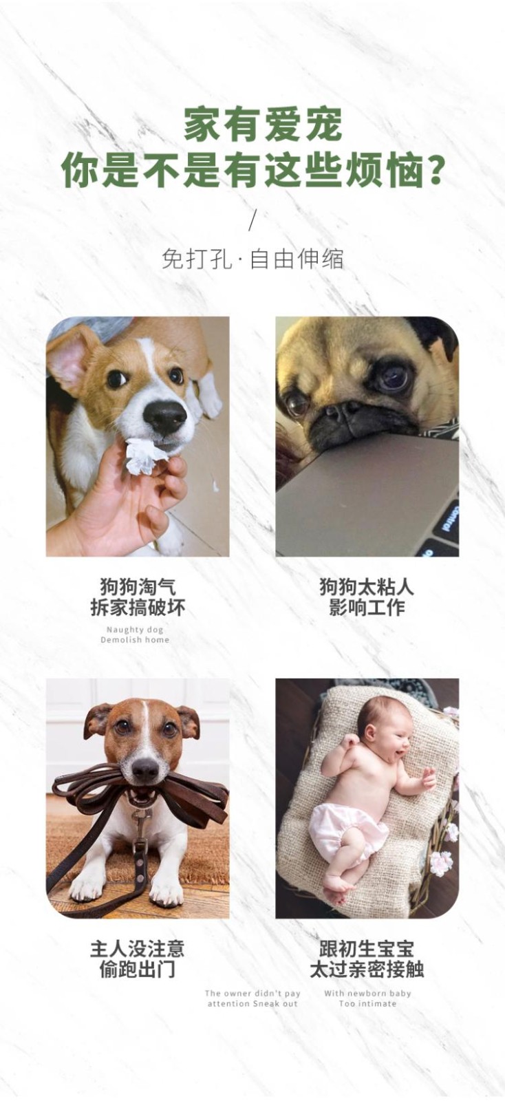 Wang Taiyi baby gate for pet door gates anti blocking cat and dog dog gate fence indoor safety dog cage large, medium, and small dogs swinging extra wide white 42-60 wide * 24 high (see the second photo for this model)