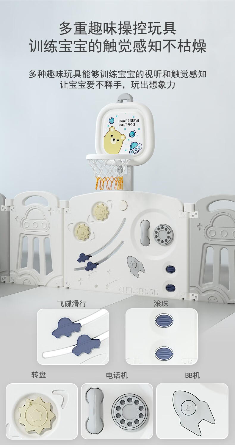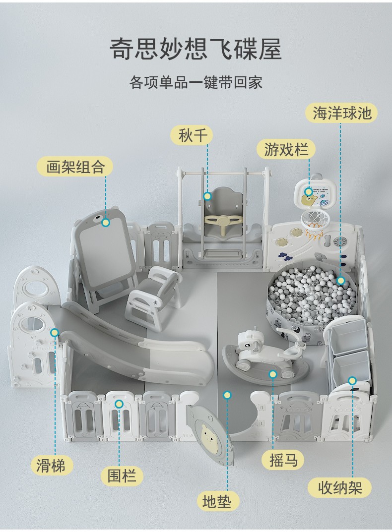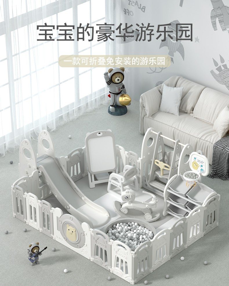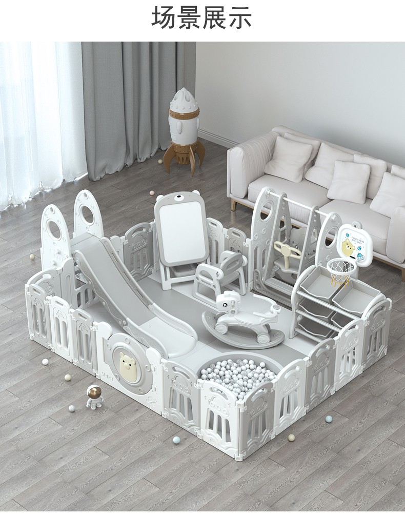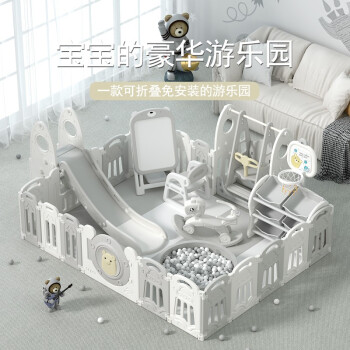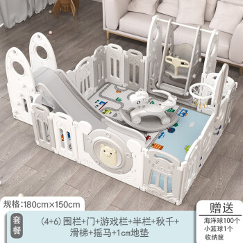 Foldable Baby Walking Indoor Children's Playpen Indoor Home Safety Anti Safety Amusement Park Equipment Slide, Swing, Shake Horse Combination Playpen Crawling Pad Crawling Pad Toy Foldable 150 × 180cm 【 Small E Package 】 Nordic Grey 【 Image Price...