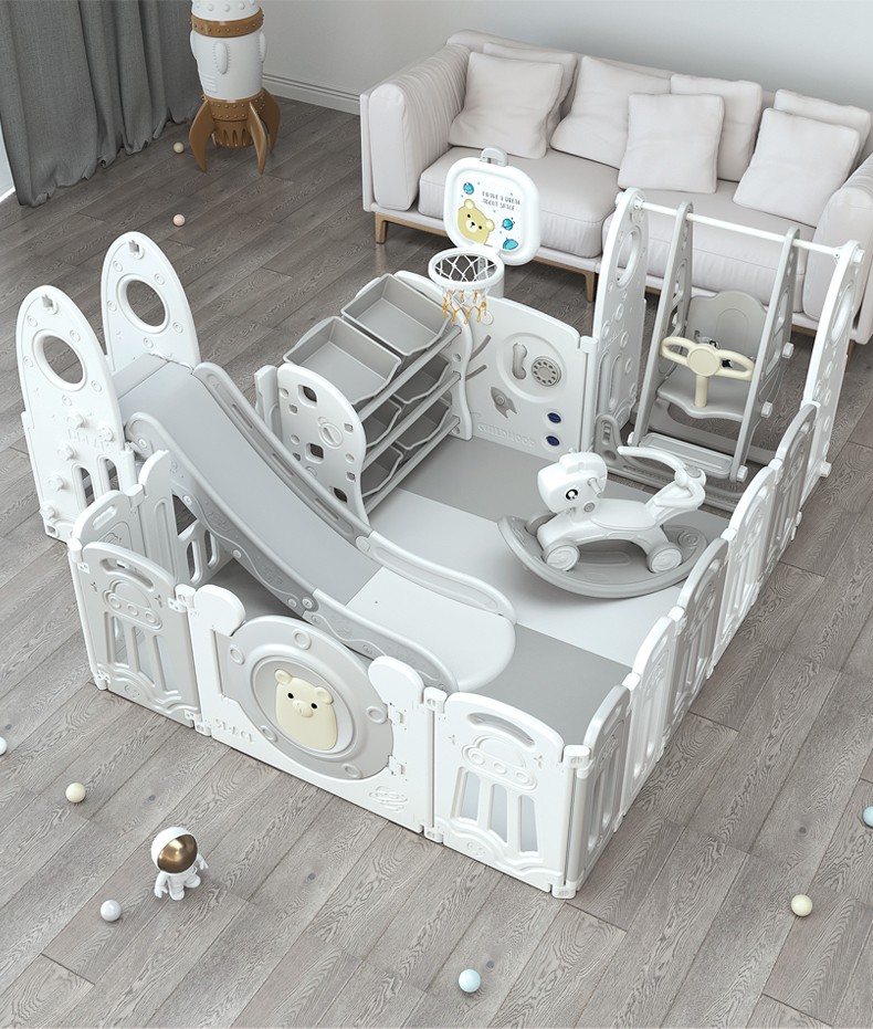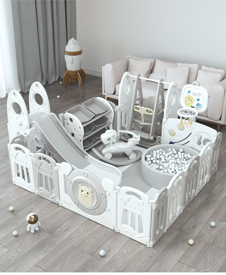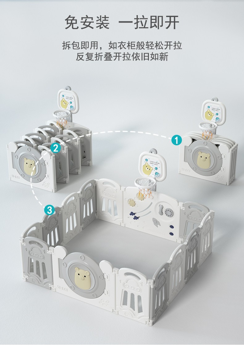 Foldable Baby Walking Indoor Children's Playpen Indoor Home Safety Anti Safety Amusement Park Equipment Slide, Swing, Shake Horse Combination Playpen Crawling Pad Crawling Pad Toy Foldable 150 × 180cm 【 Small E Package 】 Nordic Grey
