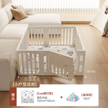 Miaomiaowu Baby Playpen with crawling mat on the ground, children's safety fence, living room, indoor home game Playpen 137 * 157 [Small A model] Baby exclusive game Playpen [Image price brand quotation]-