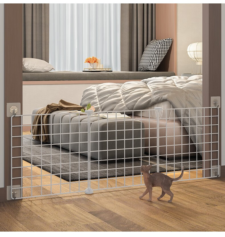 Xunliba Balcony Screen Swinging Baffle Baby Gate for CatsGate Mouth Net Dog Gate Pet Safety Cage Fence Bed Indoor 4 Iron Mesh - White [Image Price Brand Quotation]-
