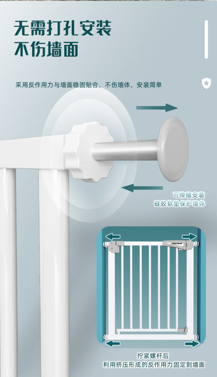 Runhua New Year Children's Staircase Extra wide, no punching, children's safety gateindoor, baby staircase opening, anti safety, baby kitchen, all reinforced and thickened compression resistant version, suitable for width (97cm-1