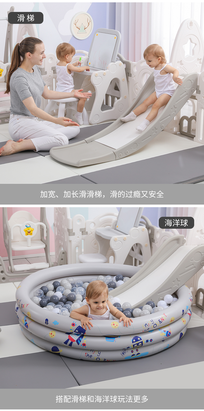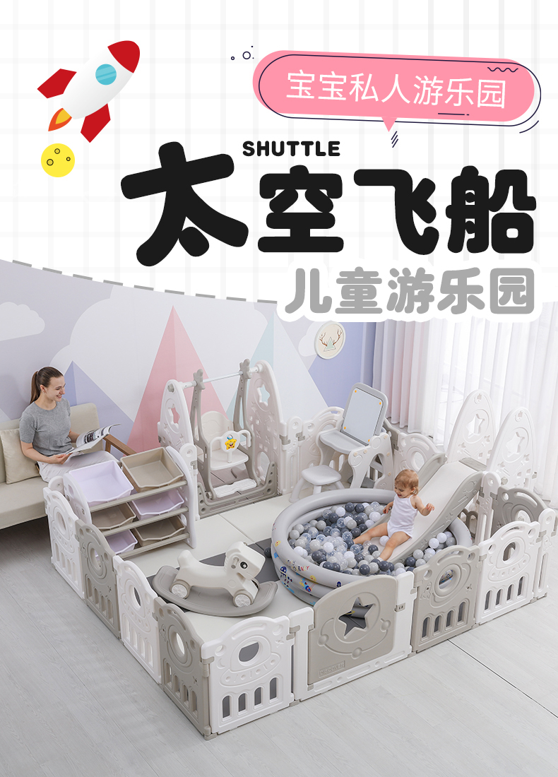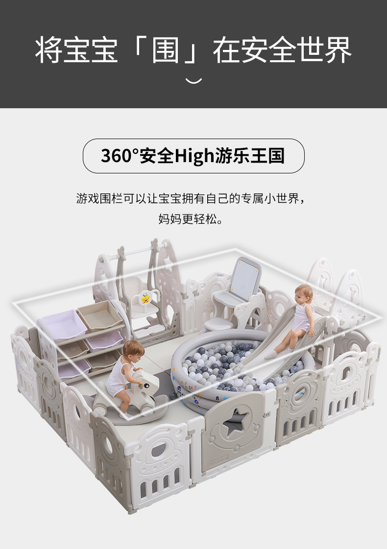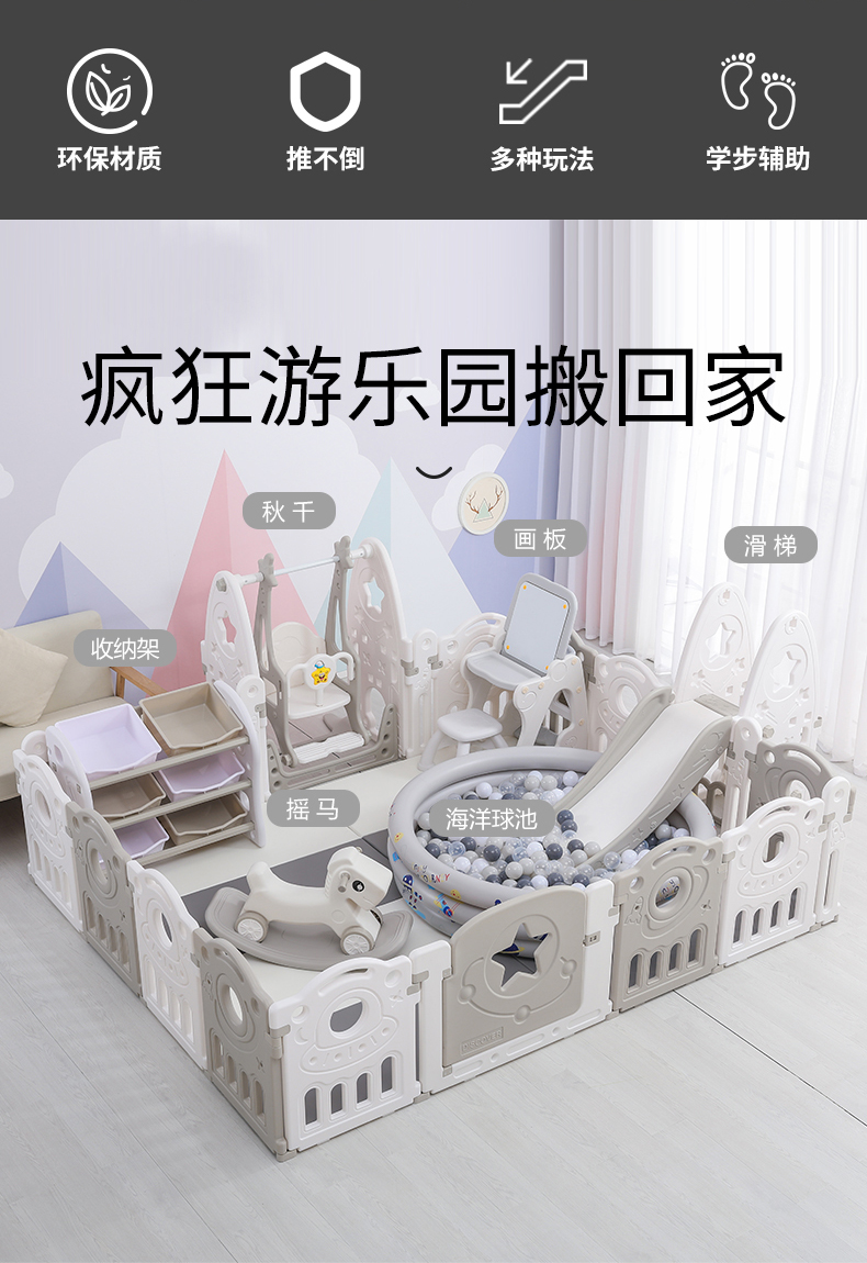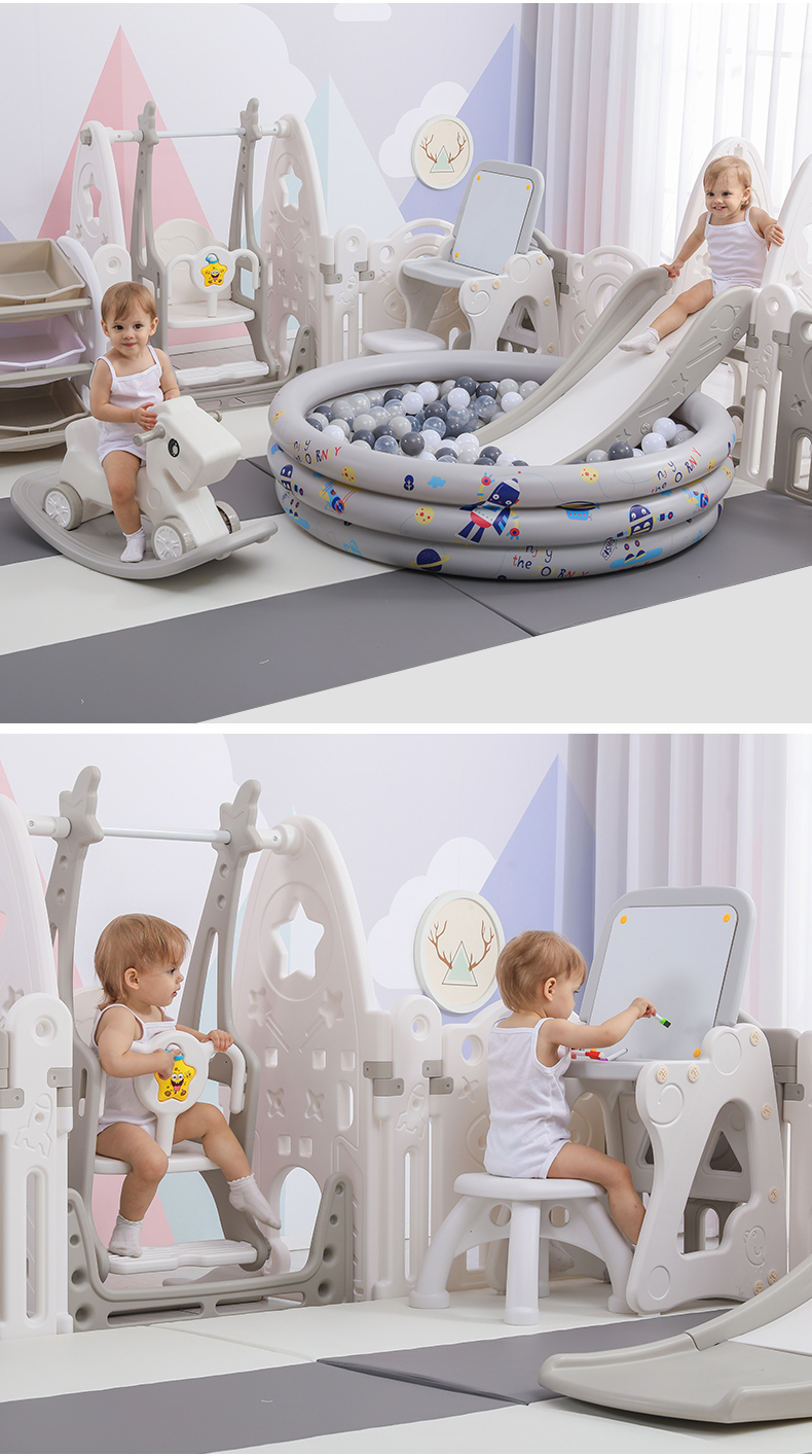 Children's playpen anti safety baby crawling mat, household fence, indoor safe toddler game, playpen field, 2x2.5 meters swing slide, sponge ball pool, picture board, bookshelf, basketball rocking horse XPE [Image price, brand quotation]-