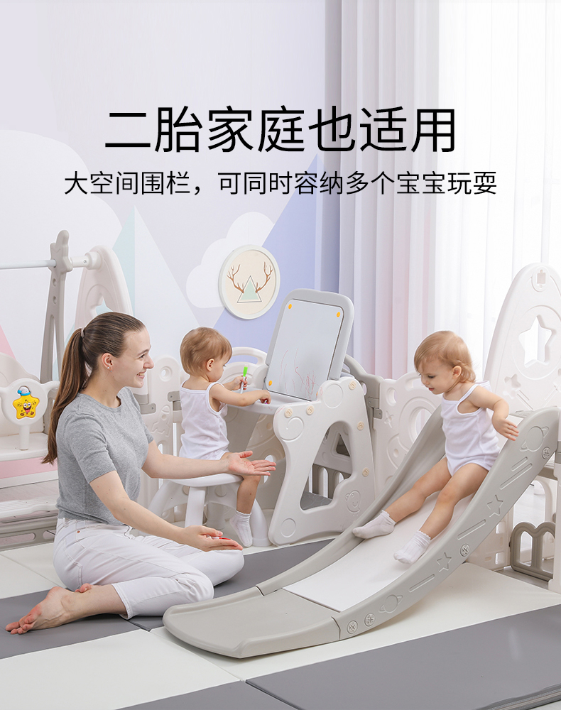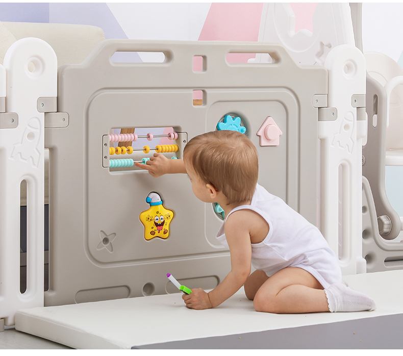 Children's playpen anti safety baby crawling mat, household fence, indoor safe toddler game, playpen field, 2x2.5 meter swing slide, sponge ball pool, drawing board, bookshelf, basketball rocking horse, XPE