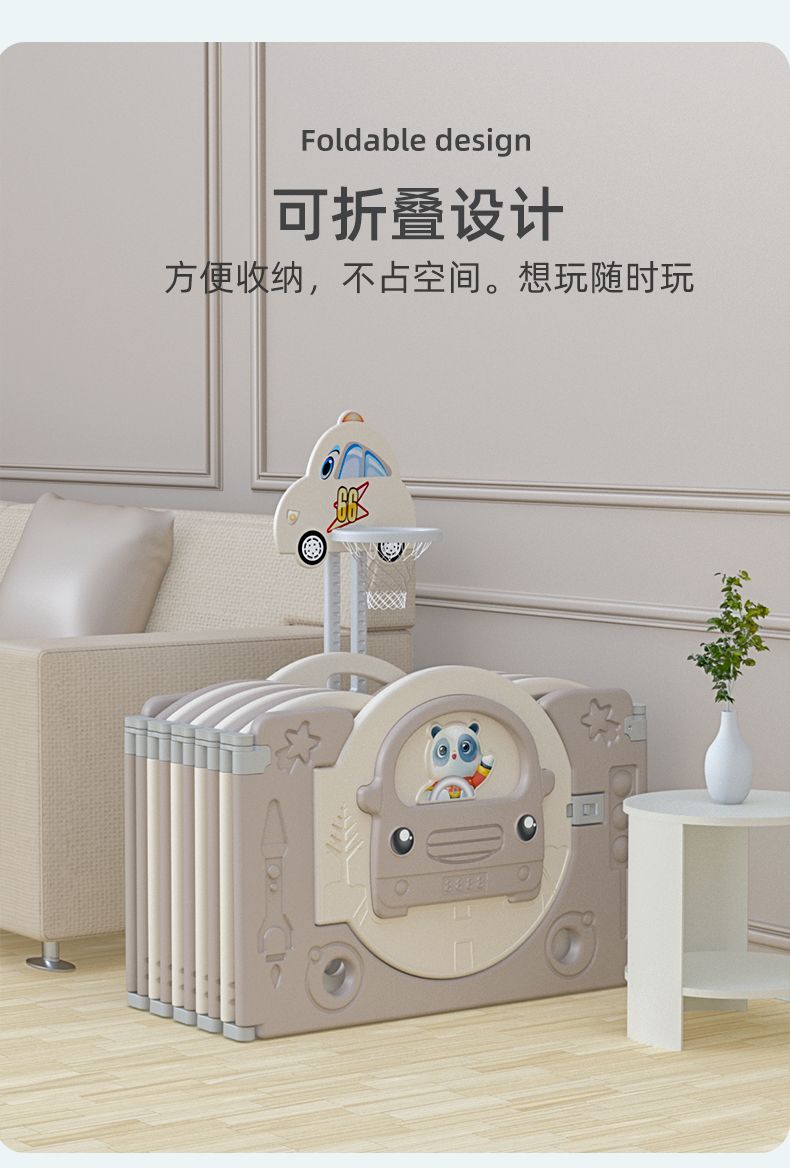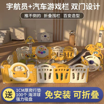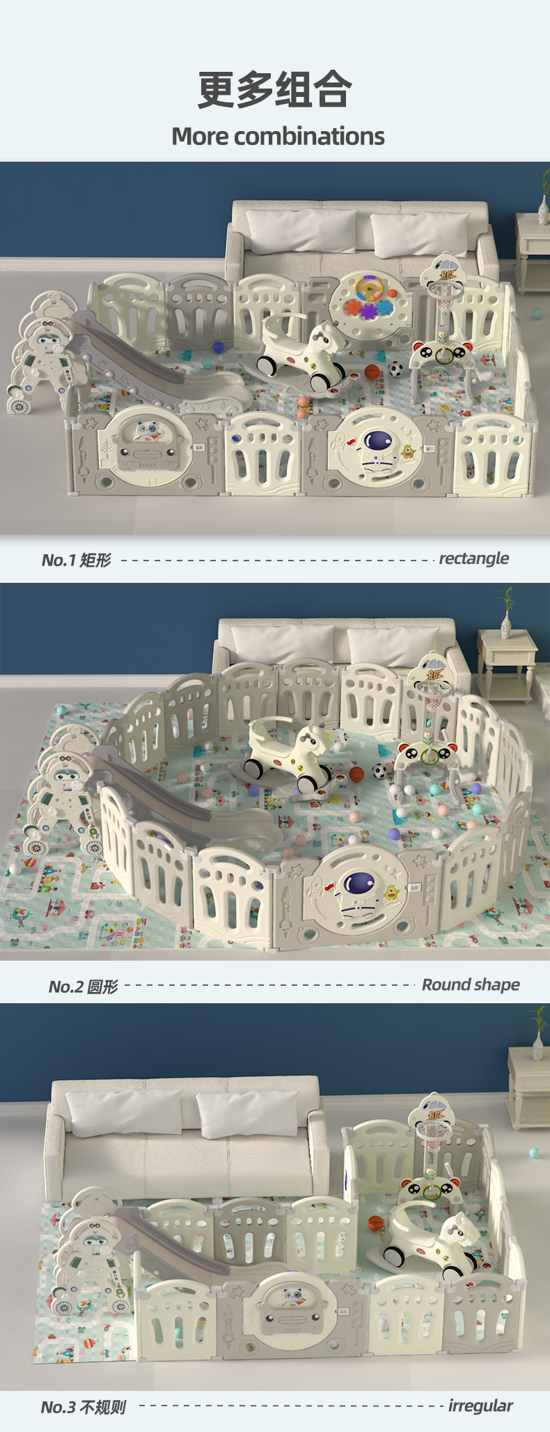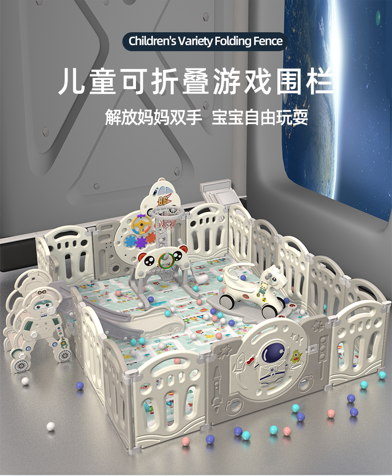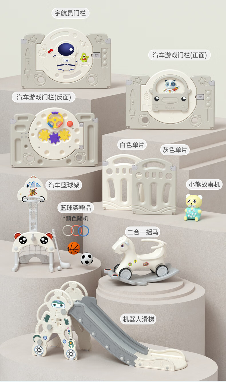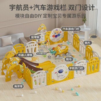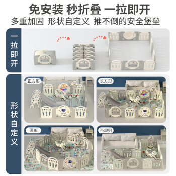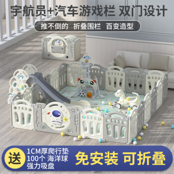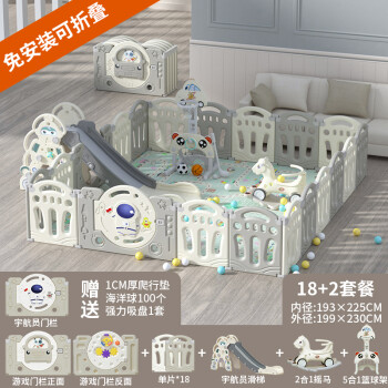 Indoor Children's Floor Baby Indoor Home Crawling Pad Anti Safety Game Baby Toddler Safety Fence Playpen Double Door 18+2+Pony+Basketball Stand+Slide Star Grey [Image Price Brand Quotation]-