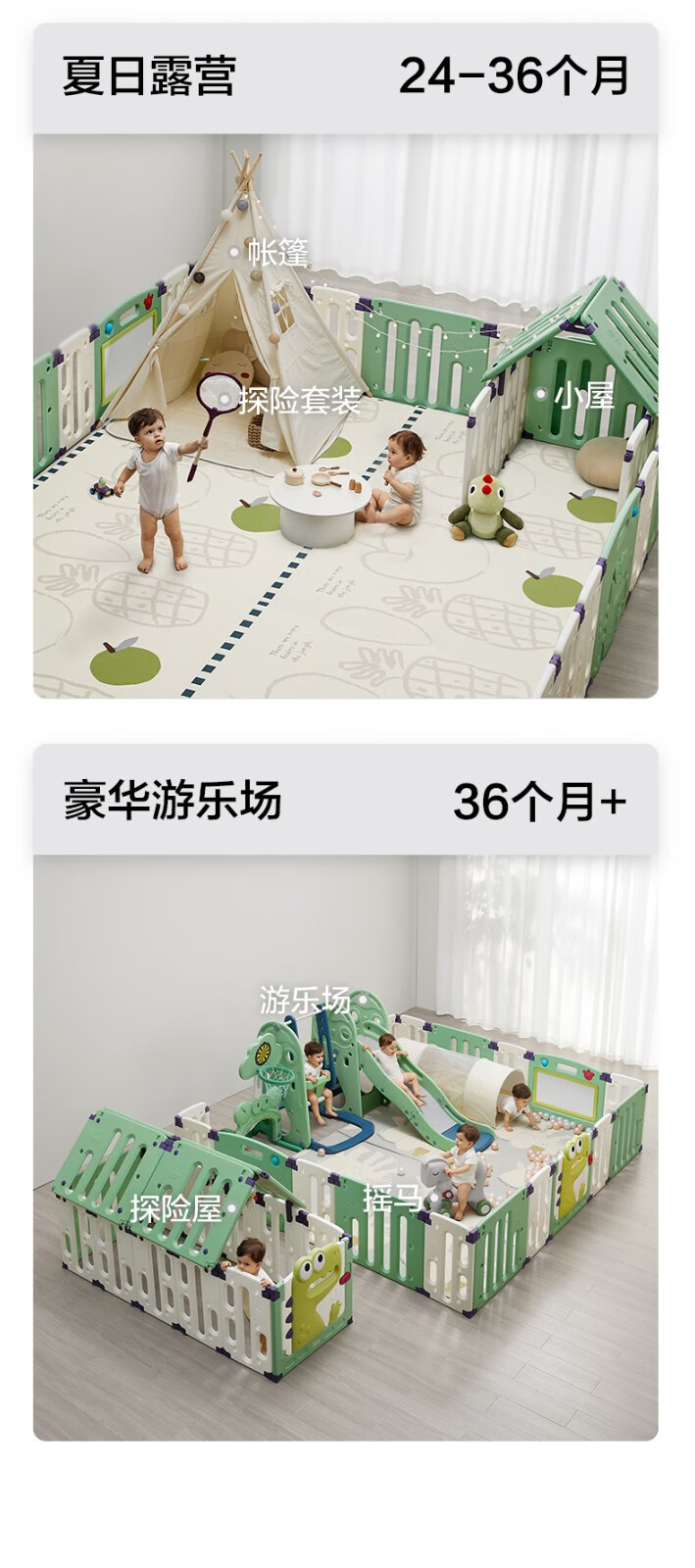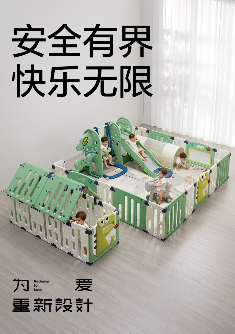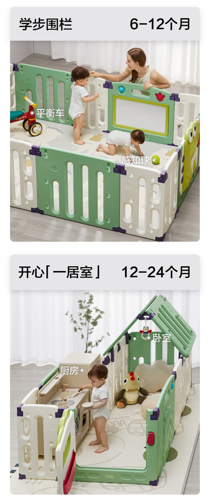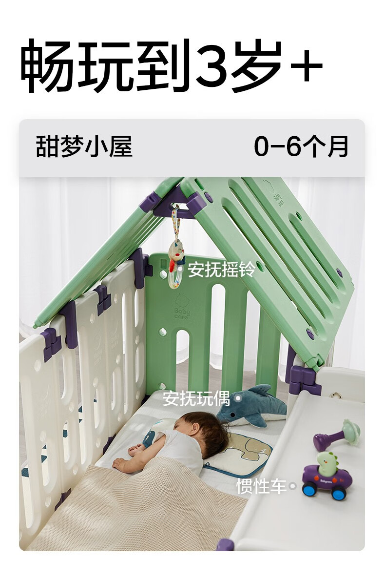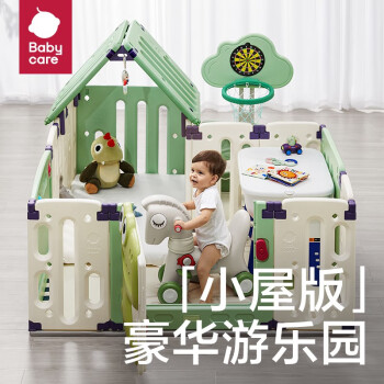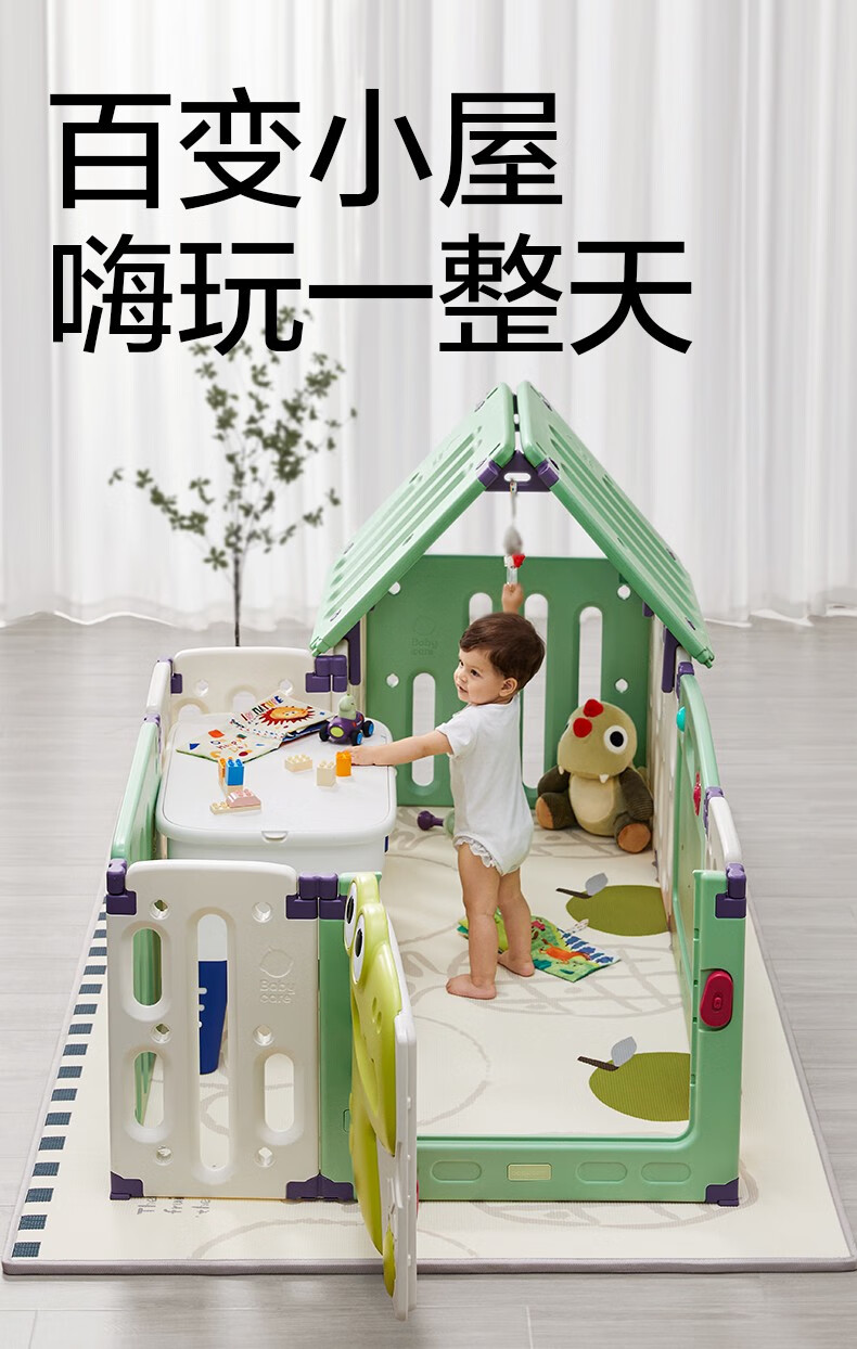 Babycare Children's Dinosaur Game: Diverse Indoor Baby Walking and Crawling Pad Safety Safety Household Indoor and Outdoor Children's Amusement Park [Single Indoor] Seconds Smaller House 110 * 146 Deco Green 6+2+2