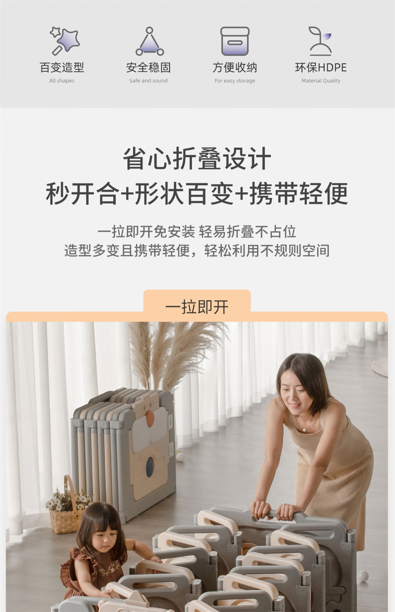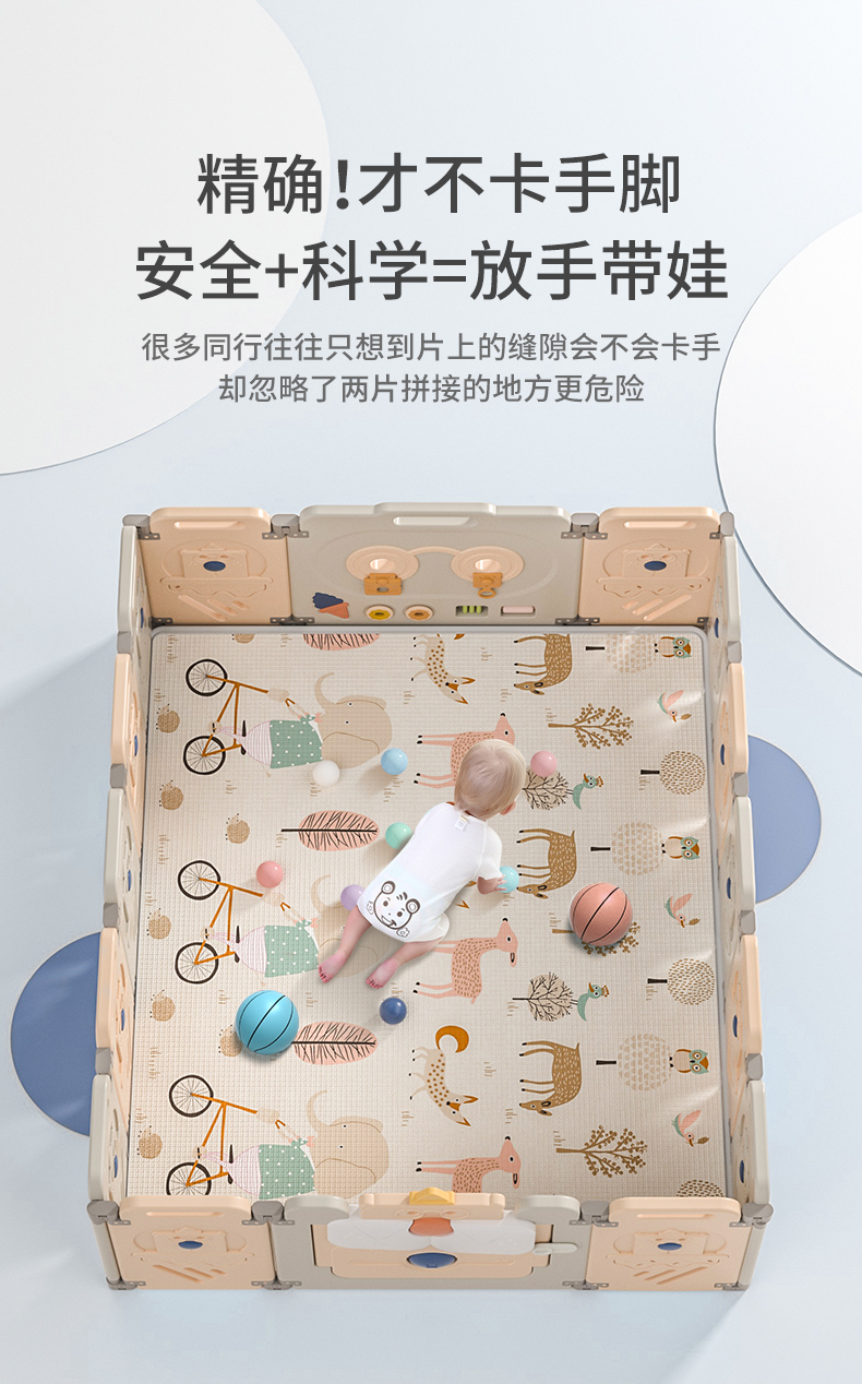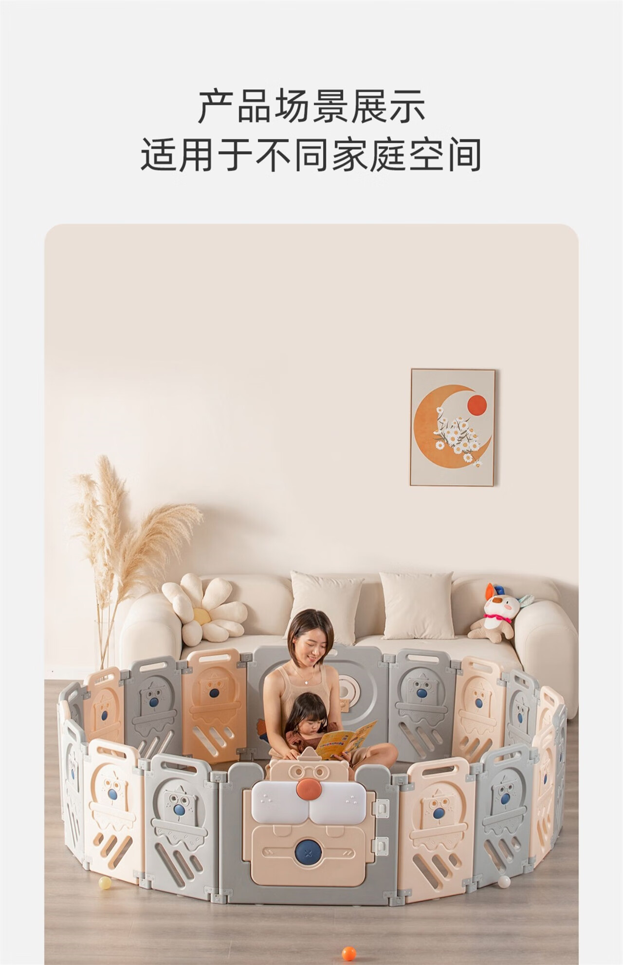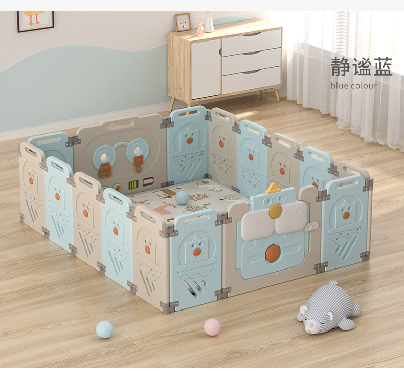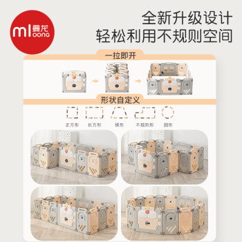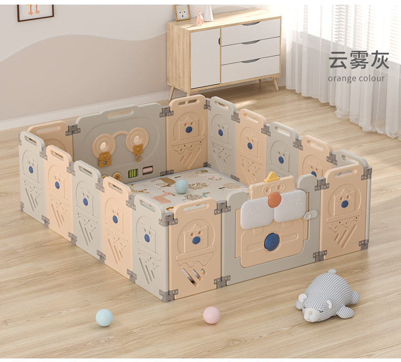 Manlong Baby Indoor Folding Anti Safety Baby Children Indoor Ground Game Fence Crawling Pad Indoor Household Cloud Grey [Foldable 14+2+PU Pad+Free Ocean Ball] [Image Price Brand Quotation]-
