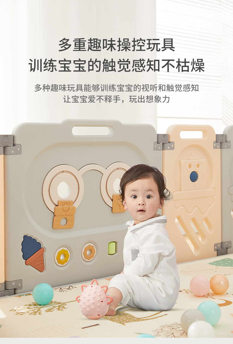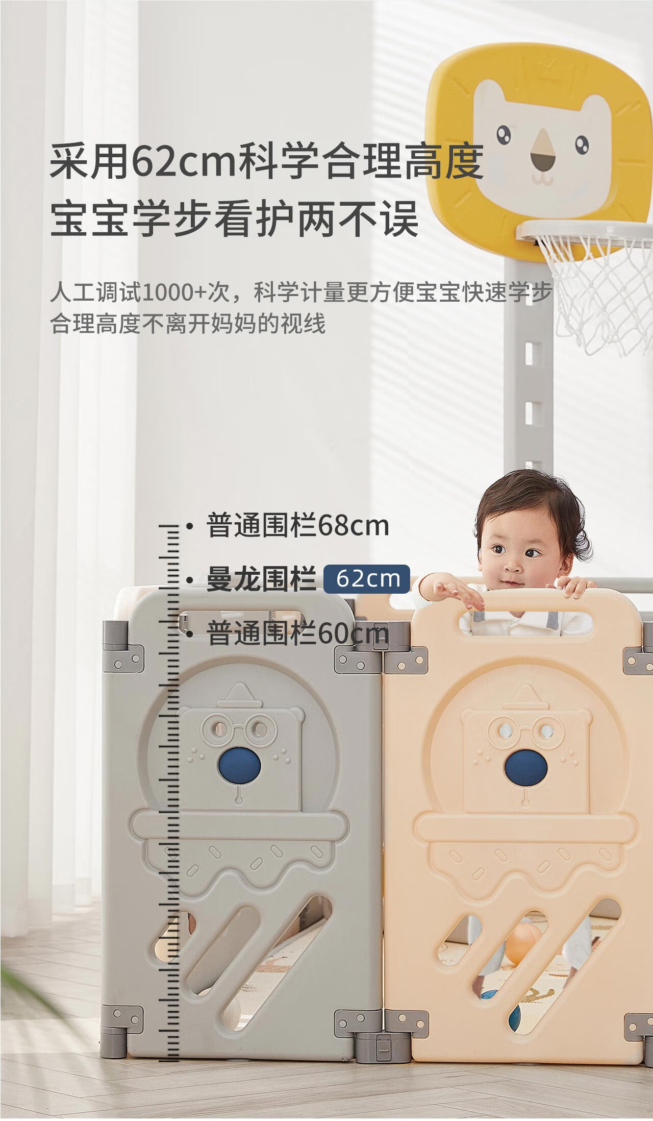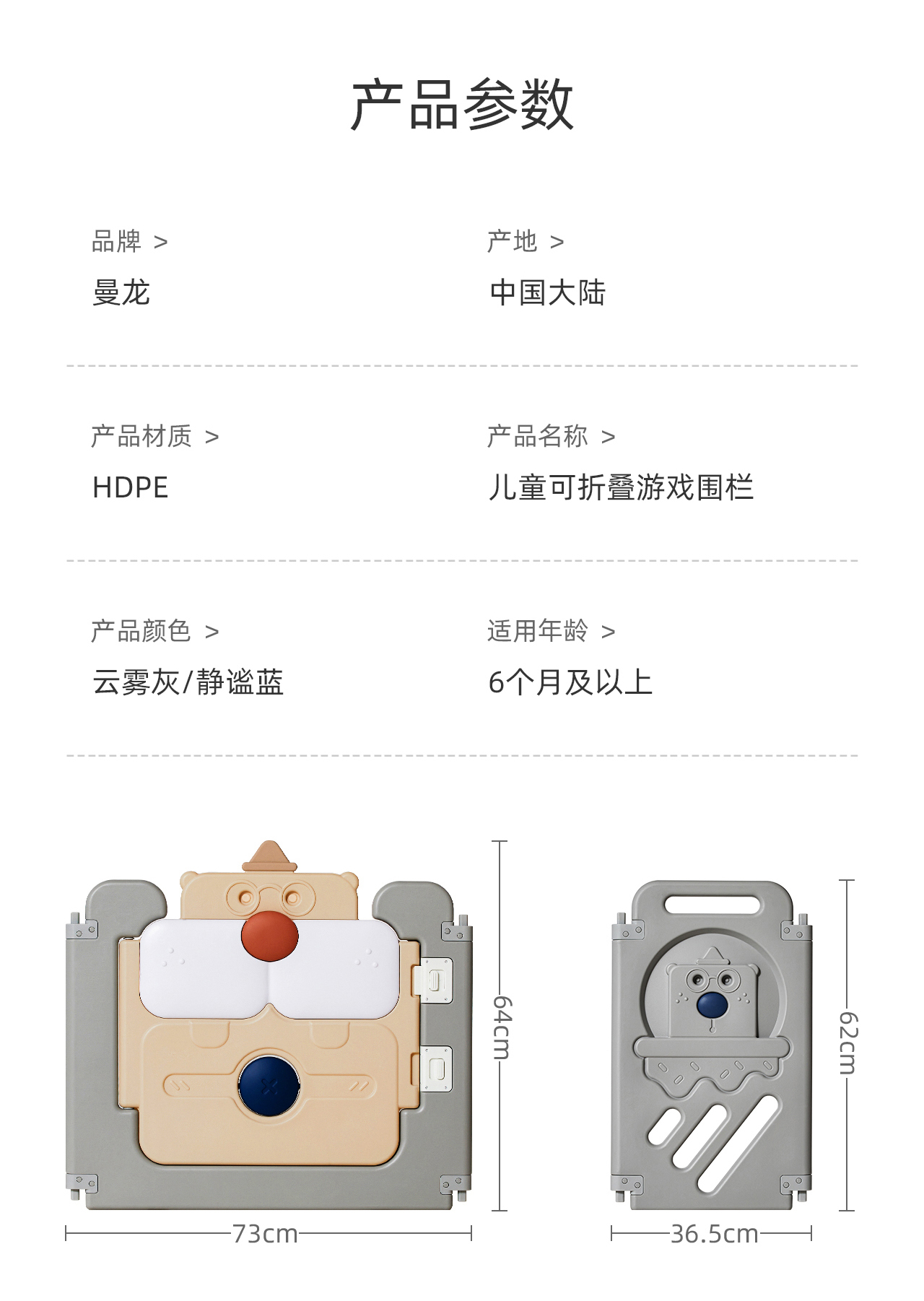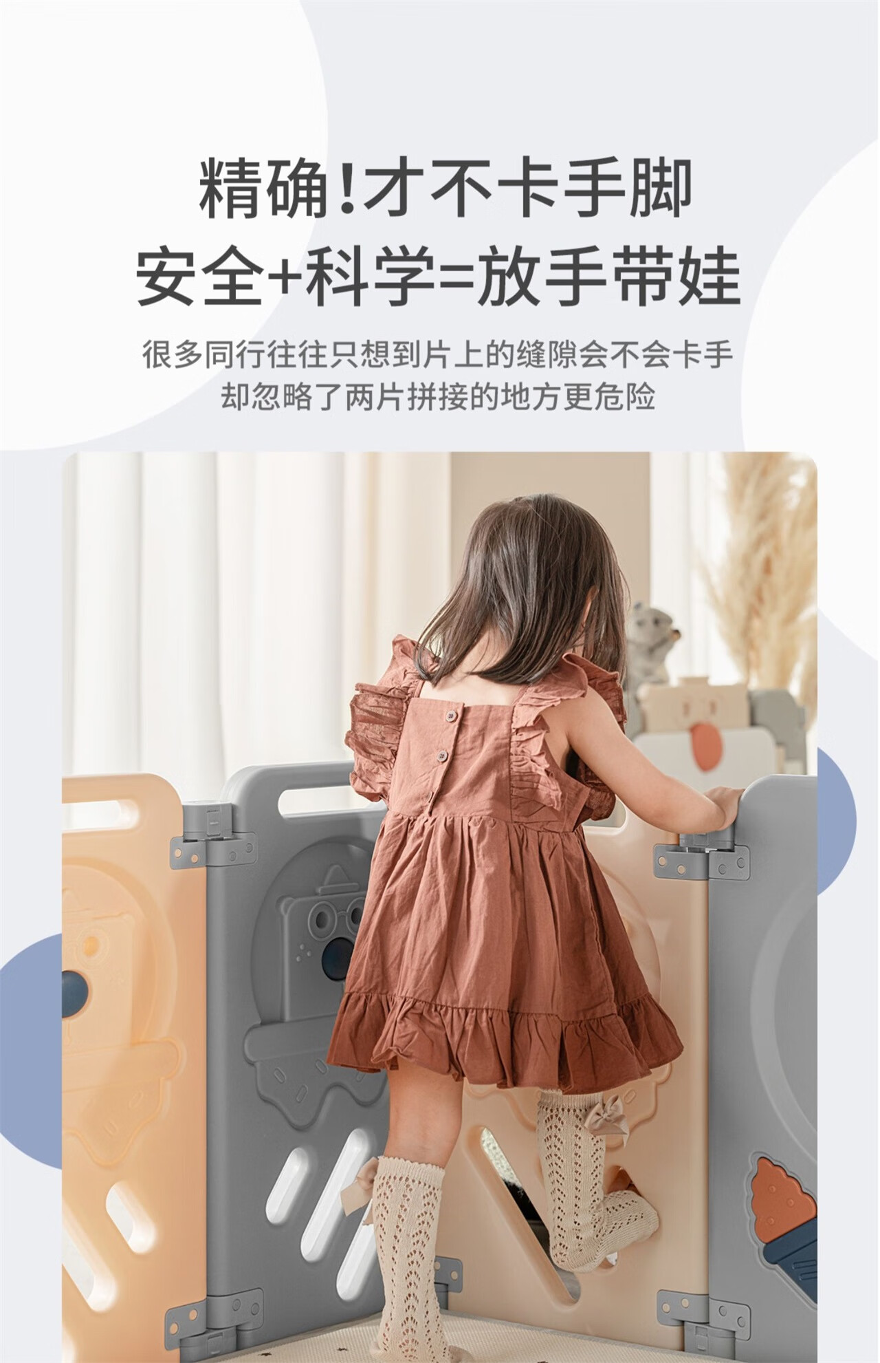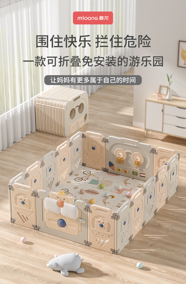 Manlong Baby Indoor Folding Anti Safety Baby Children Indoor Ground Game Fence Crawling Pad Indoor Household Cloud Grey [Foldable 14+2+PU Pad+Free Ocean Ball] [Image Price Brand Quotation]-