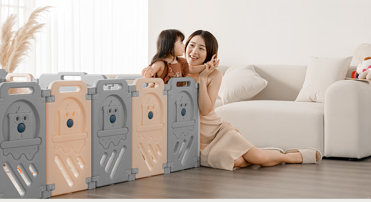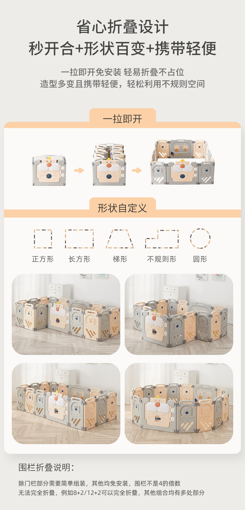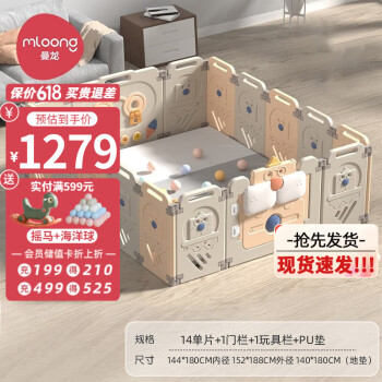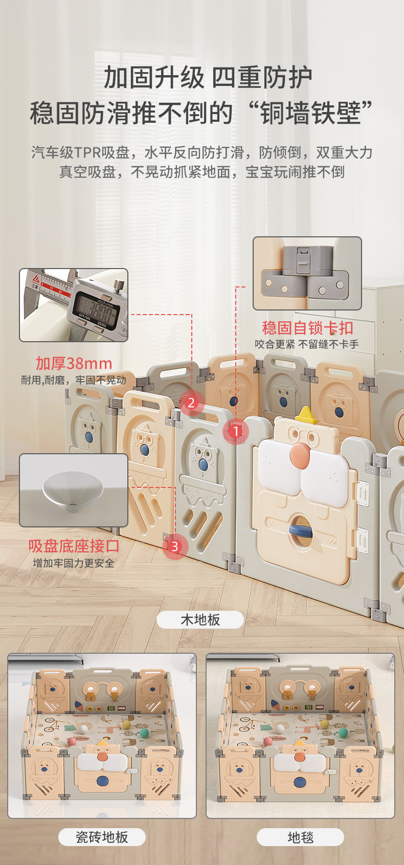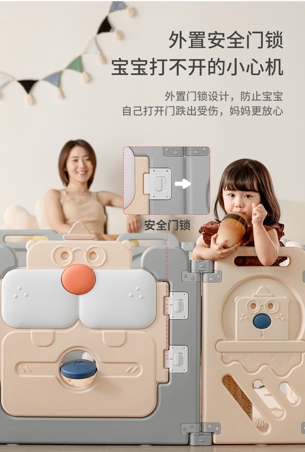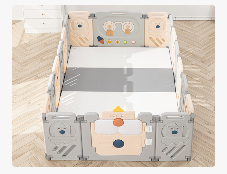 Manlong Baby Indoor Folding Anti Safety Baby Children Indoor Ground Game Fence Crawling Pad Indoor Household Cloud Grey [Foldable 14+2+PU Pad+Free Ocean Ball] [Image Price Brand Quotation]-