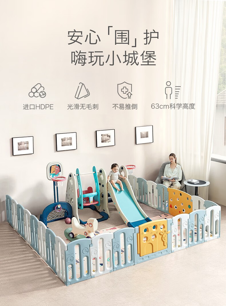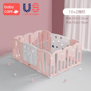 Babycare Children's Playpen Indoor Baby Safety Home Baby Crawling Pad Safety Walking Fence [10+2 pieces] Vermilion Powder [Image Price Brand Quotation]-