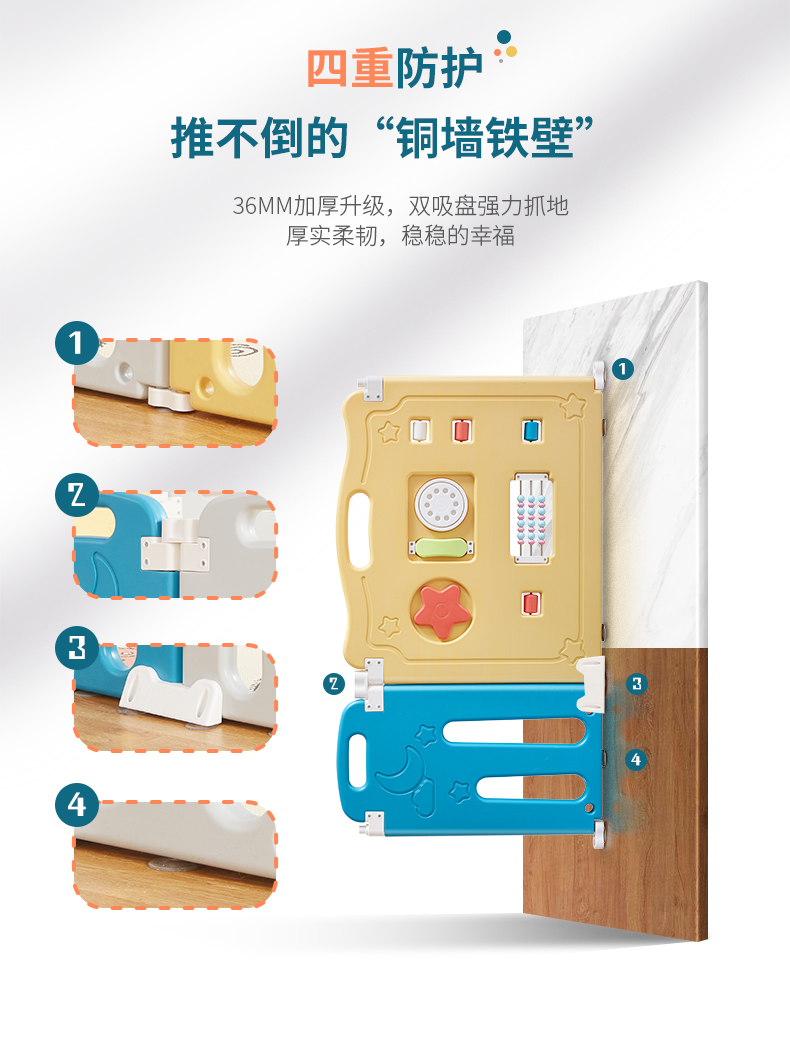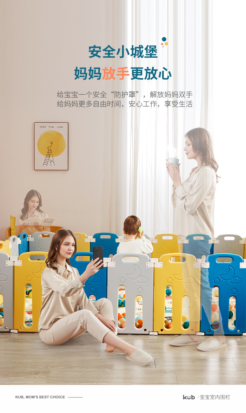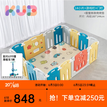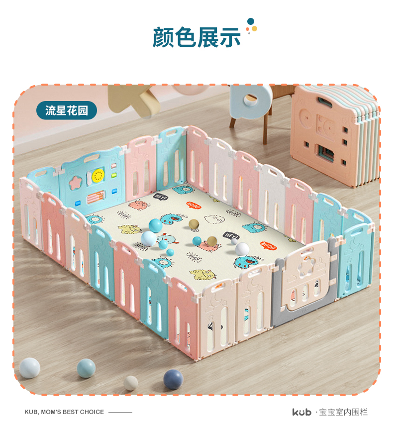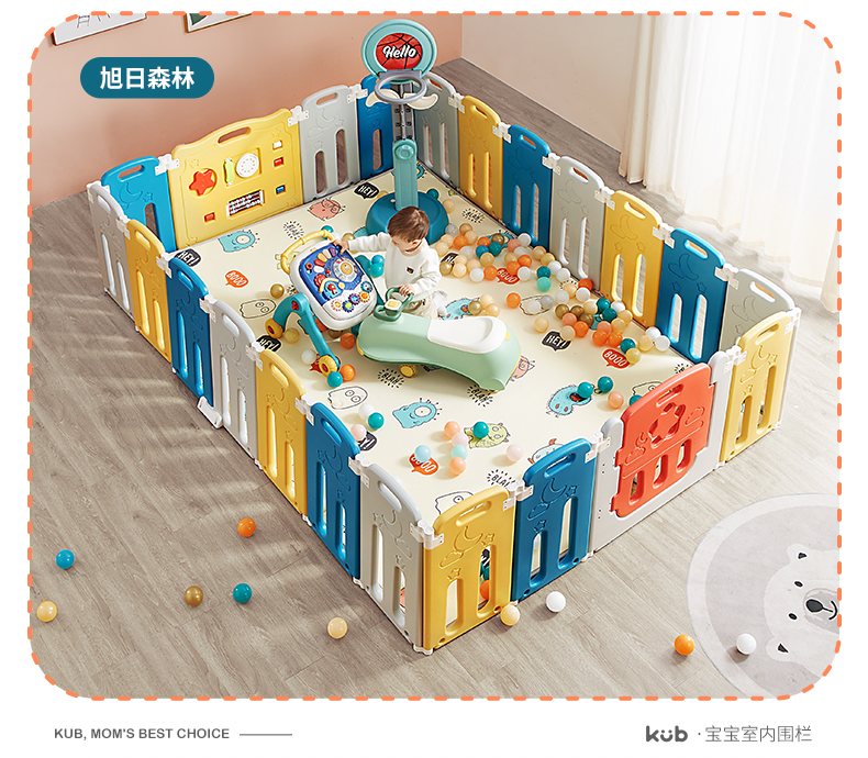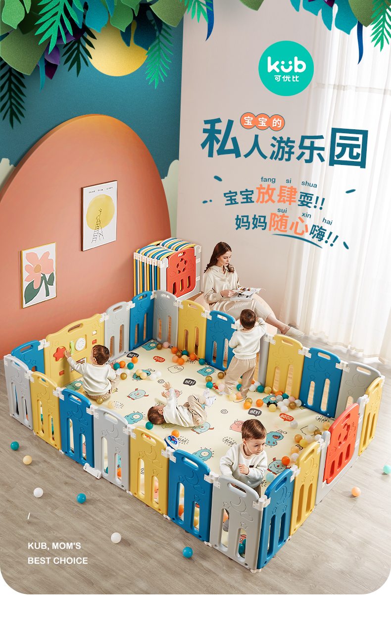 KUB children's playpen baby foldable fence baby toddler crawling pad safety and safety prevention home indoor children indoor14+2+mischievous spirit 2cm thick crawling pad [image price brand quotation]-