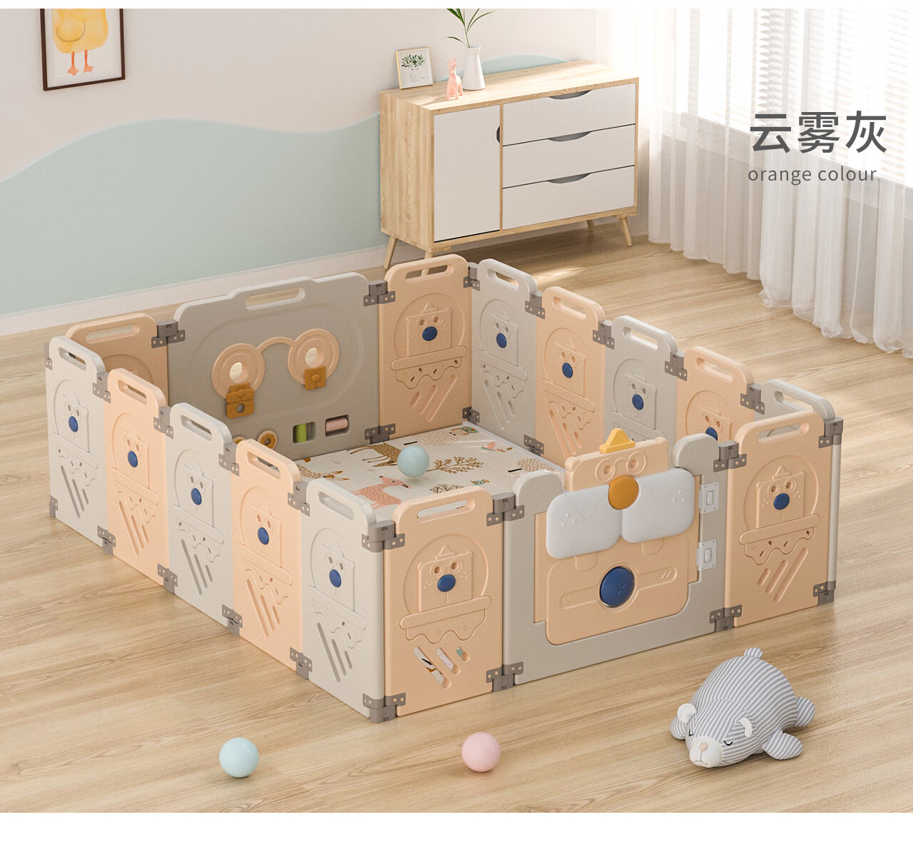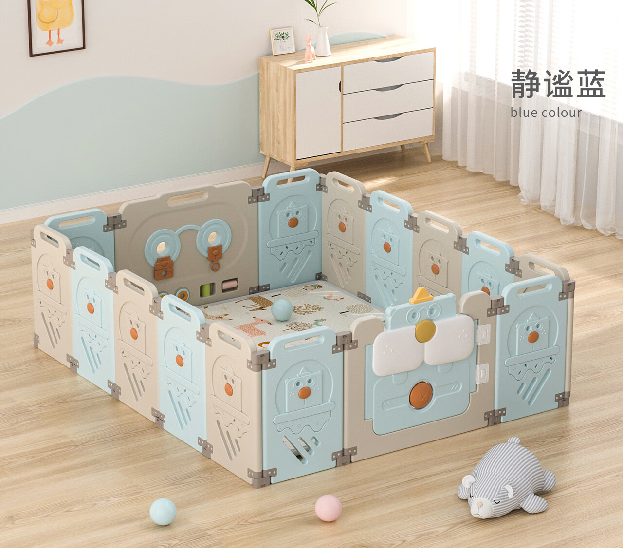 【 Manlong Squirrel Folding Indoor+14+2+Forest Elephant 】 Manlong Baby Folding Playpen Children's Floor Baby Crawling Pad Walking Safety Squirrel Indoor+XPE Crawling Pad 【 Market Quotation Price Evaluation 】-