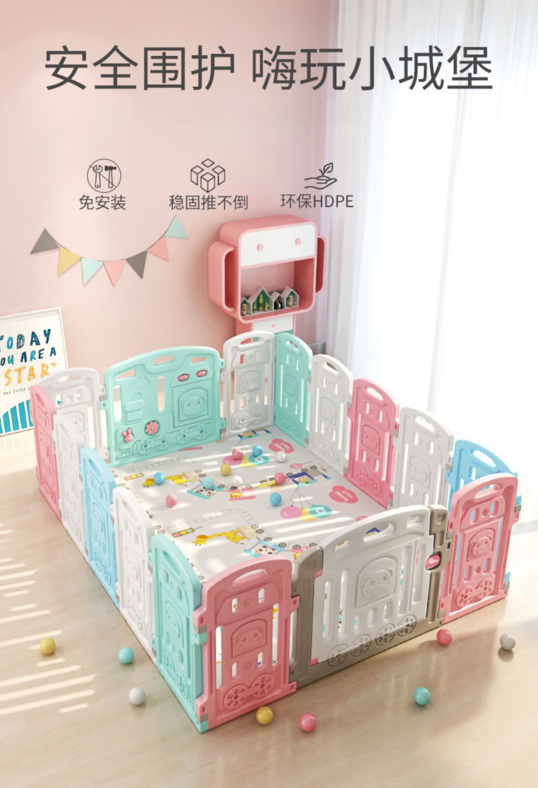 Product Name: KULAXIONG Children's Playpen Plus Height 68cm Baby Crawl Pad Safety Pedestrian Safety Protection Ocean Ball Amusement Park Plus Height (68cm) 18+2 | Product Name: KULAXIONG Children's Playpen Plus Height 68cm Baby Crawl Pad Safety Pedestrian Safety Protection Ocean Ball Amusement Park Plus Height (68cm) 18+2 |
