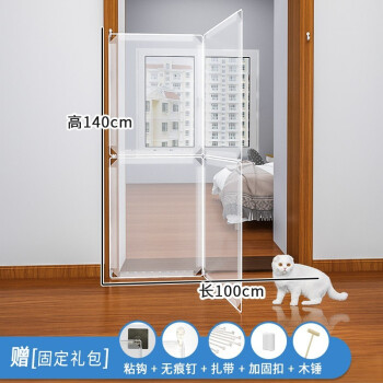 Kousi baby gate for petbaby gate for catsindoor dog baffle indoor dog guard gates balcony baby gate for catsGate perforated dog fence [suitable for adult cats] 100 * 140CM high cost performance [strong adhesive hook+tie+reinforced buckle]