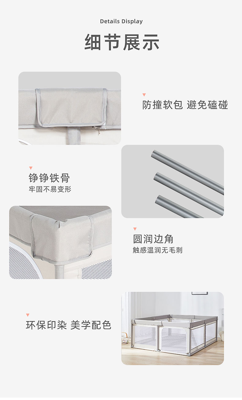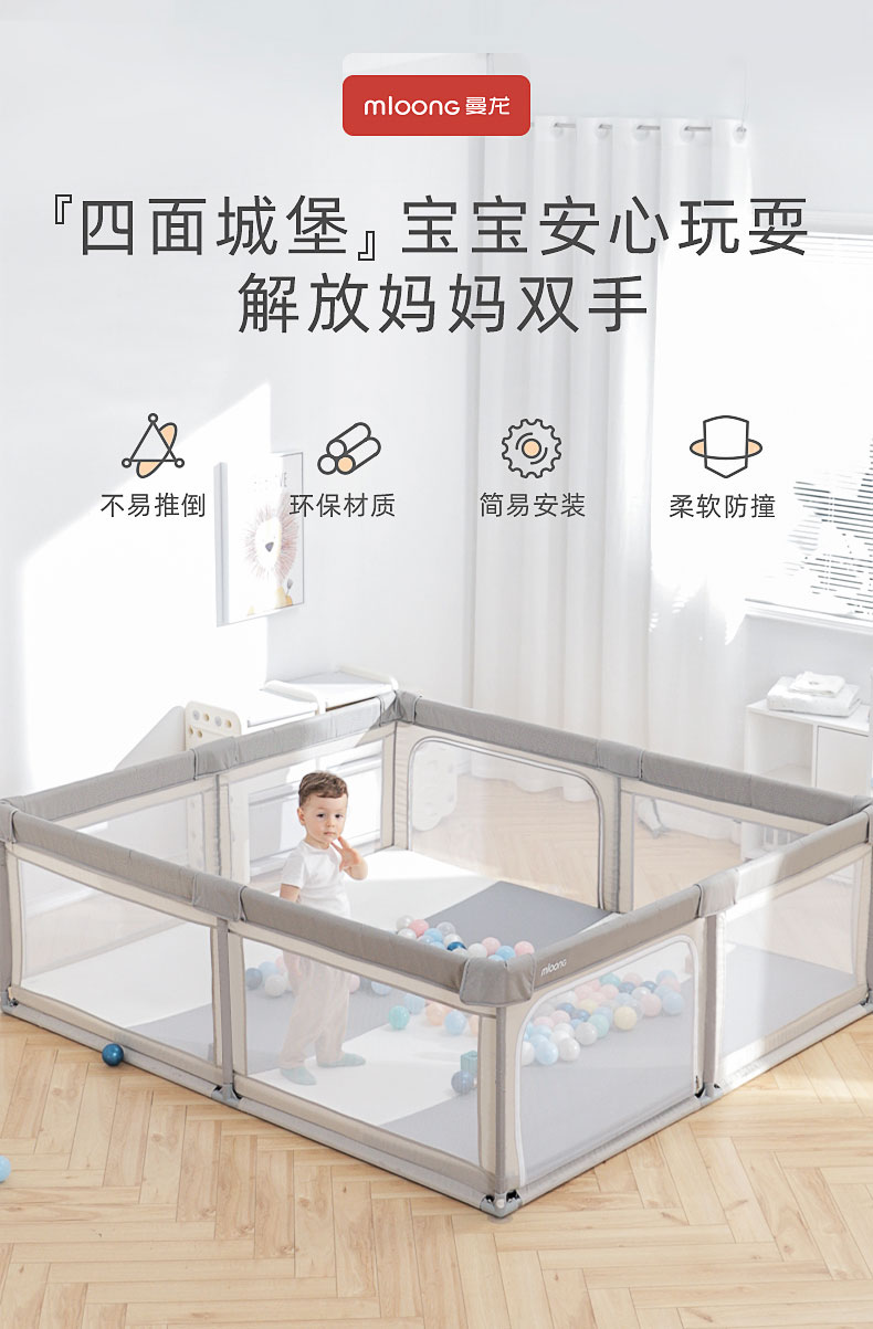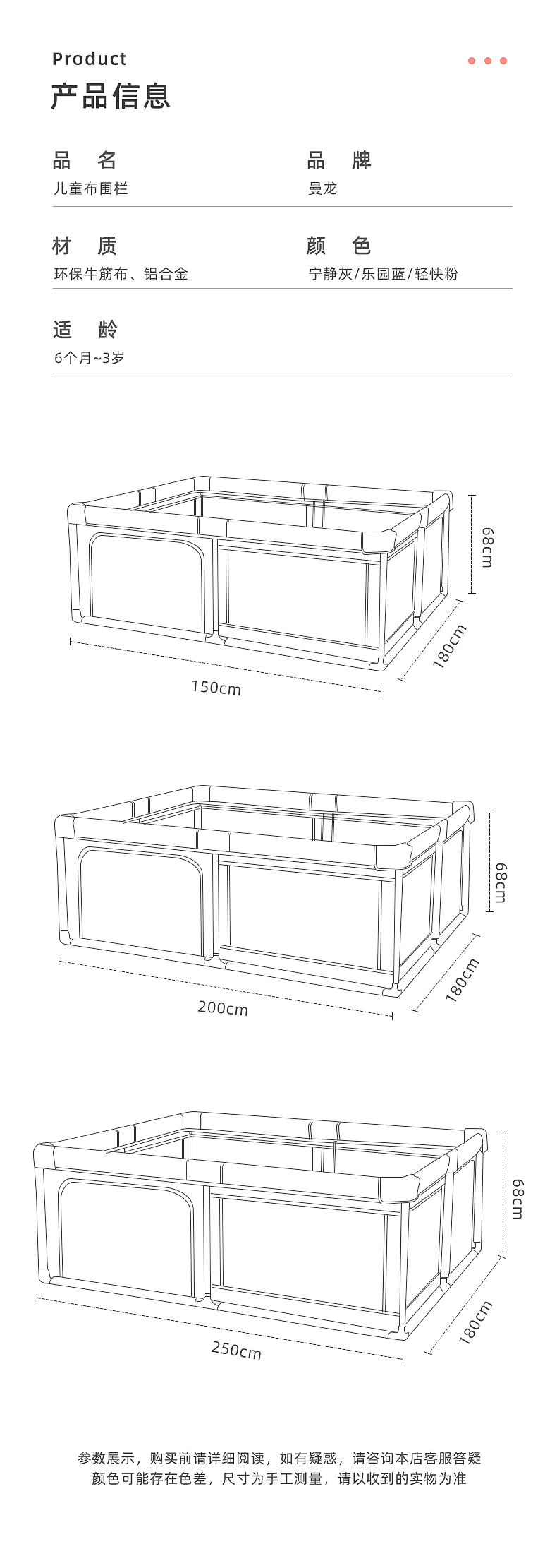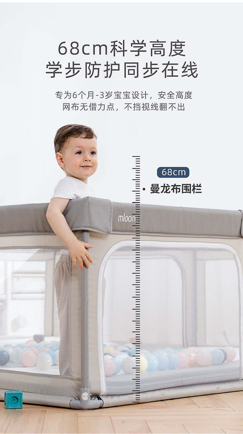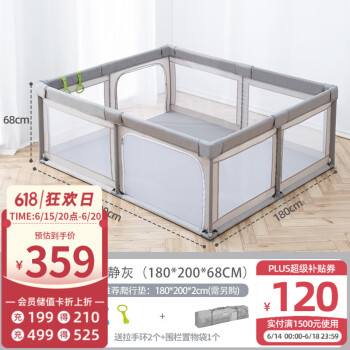 Manlong Baby Playpen Indoor Safety Anti Drop Cloth Indoor Safe Crawling Walking Fence Quiet Grey (180 * 200 * 68CM) [Image Price Brand Quotation]-