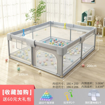 Indoor Anti Safety Baby Crawling Walking Fence Baby Indoor Home Crawling Pad Children's Game Safety Bar Grey (Inner Diameter 180 * 200cm) New Upgrade Easy to Disassemble+Big Gift Bag [Image Price Brand Quotation]-