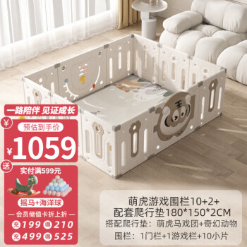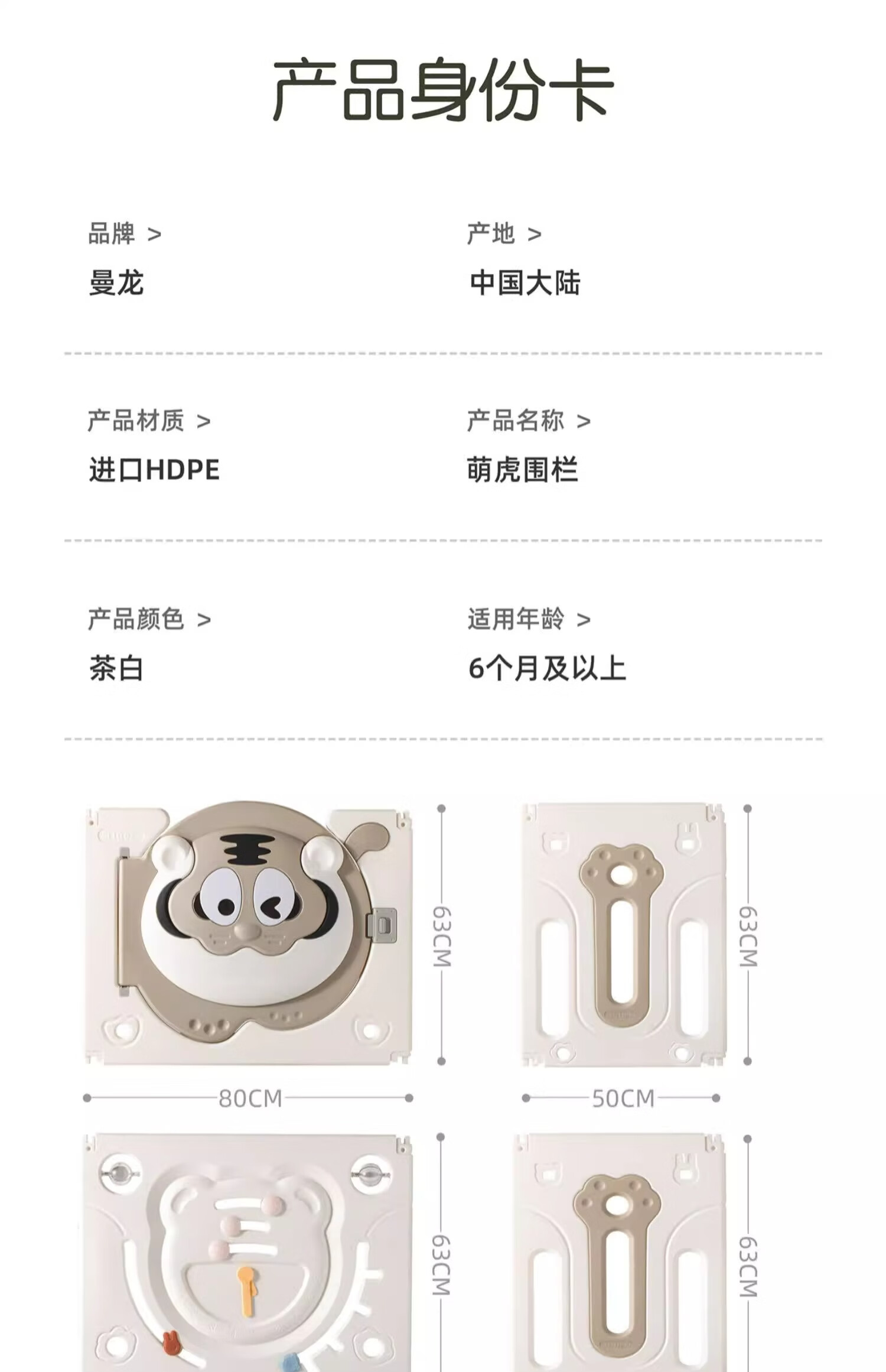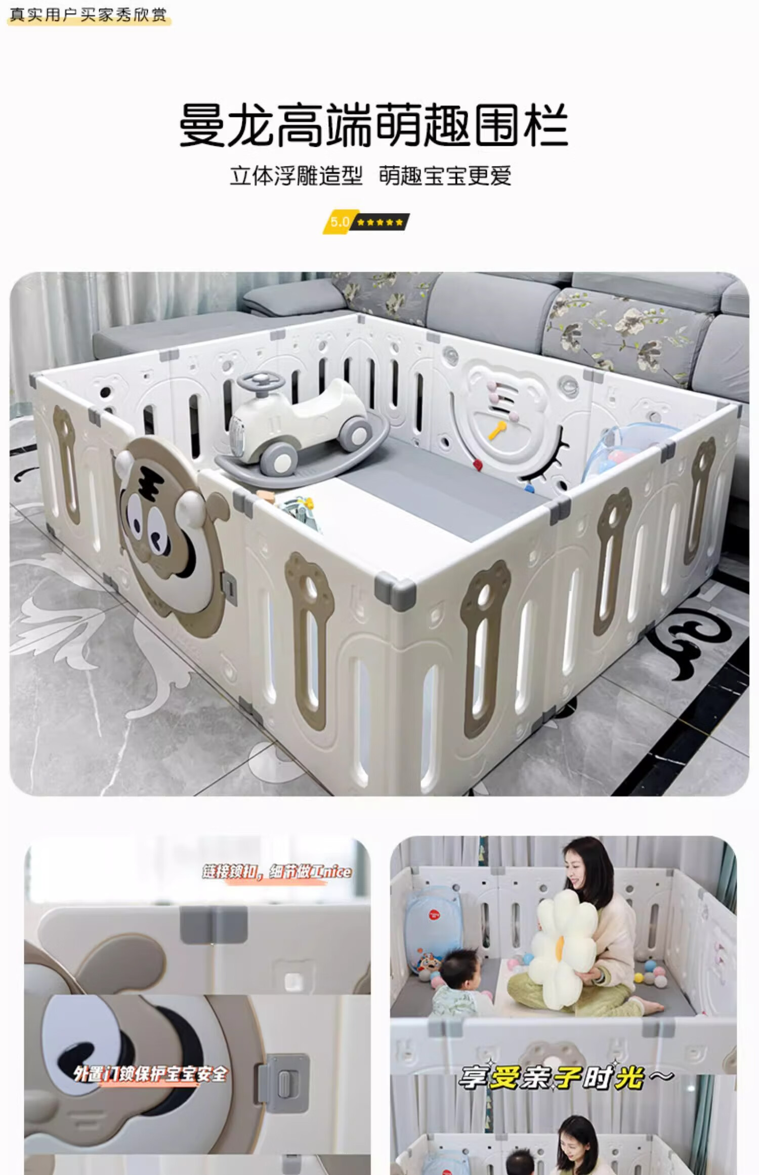 Manlong Cute Tiger Indoor Baby Safety Baby Indoor Household Playpen Children's Climbing Pad Walking Fence Indoor+XPE Crawling Pad (180 * 150cm) [Image Price Brand Quotation]-
