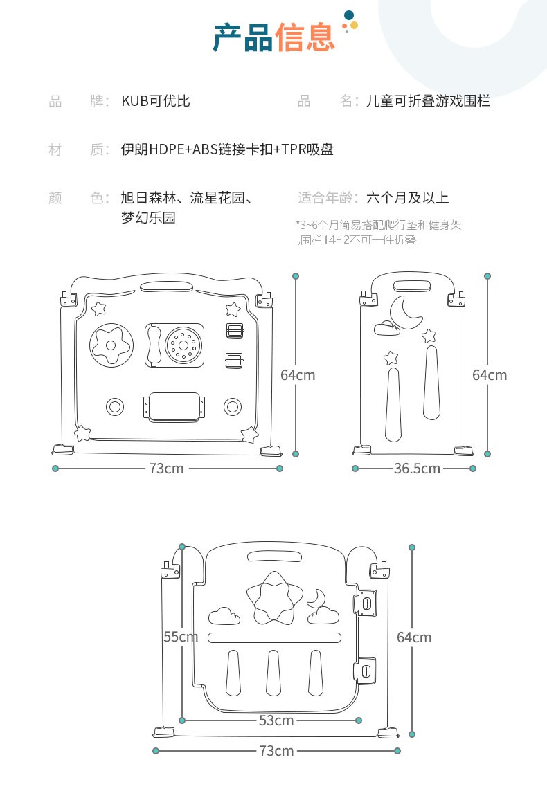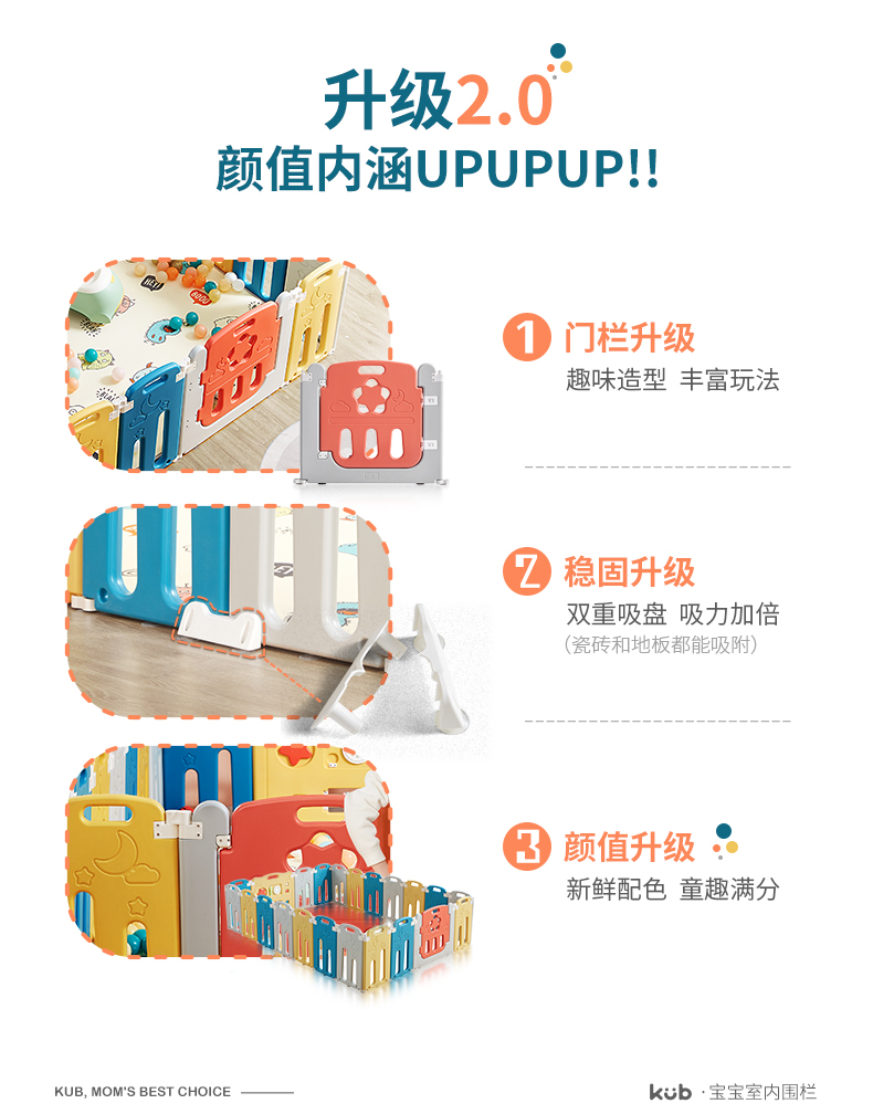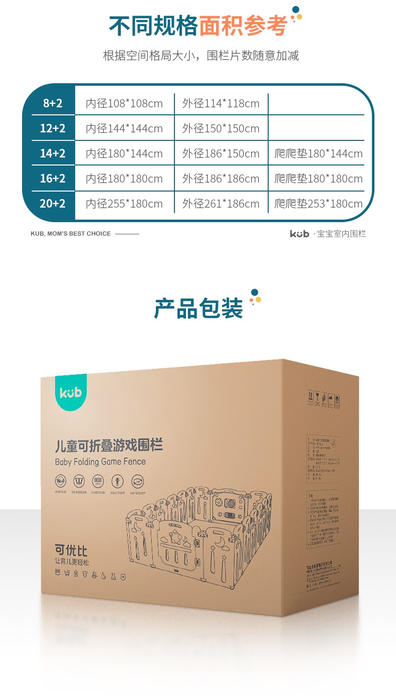 KUB Children's Playpen Baby Foldable Fence Baby Walking and Crawling Pad Safety and Safety Home Indoor Infants Indoor16+2 [Image Price Brand Quotation]-