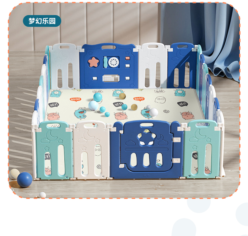 KUB Children's Playpen Baby Foldable Fence Baby Walking and Crawling Pad Safety and Safety Home Indoor Infants Indoor16+2