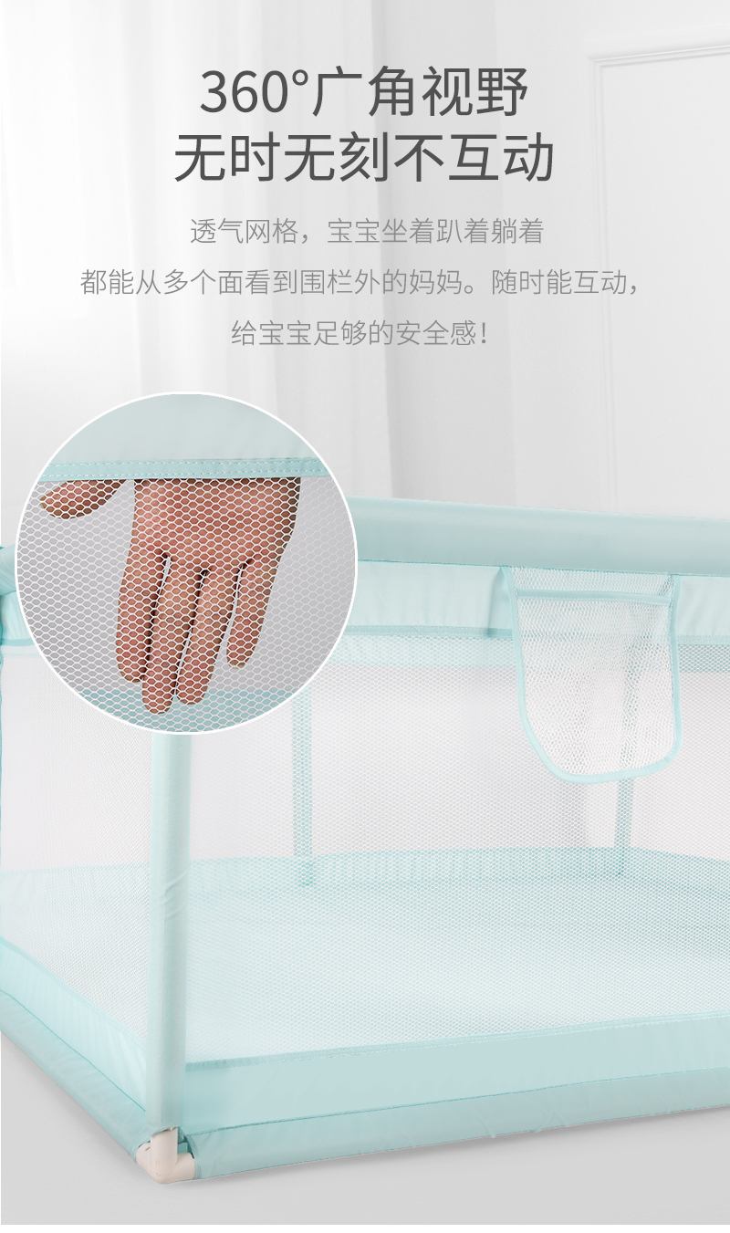 Disney Baby Playpen Children's Ground Safety Baby Crawling Pad Indoor Household Fence Mesh Crash Safety 【 Green 】 Inner Diameter 160 * 120+Cushion+Gift