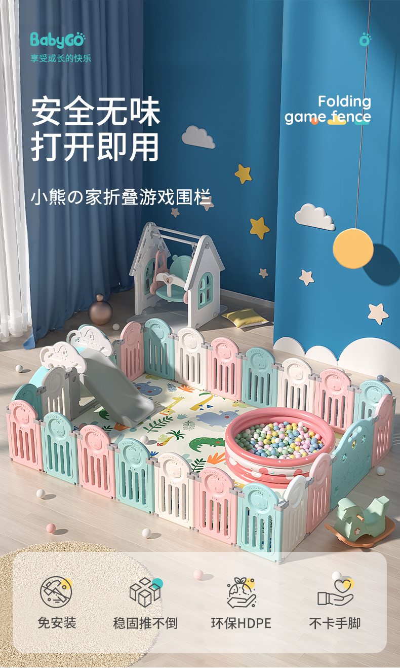 【 Baby Where to GO XXDJ003 】 Babygo Baby Playpen Anti Safety Baby and Child Safety Aboveground Indoor Home Game Playpen Crawling Floor Mat 【 Market Quotation Price Evaluation 】-