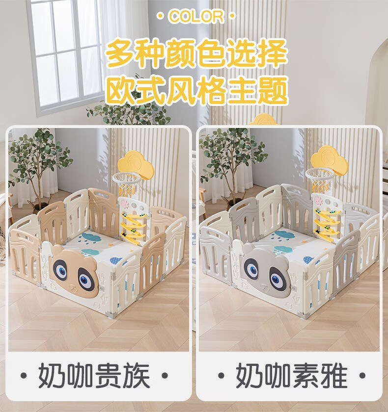 Lizhi Children's Playpen Baby Indoor Floor Baby Crawling Pad Safety Anti Safety Crawling Pad Bar Indoor Game Playpen Milk Grey 8+1 【 Five Luxury Gifts 】 【 Image Price Brand Quotation 】-