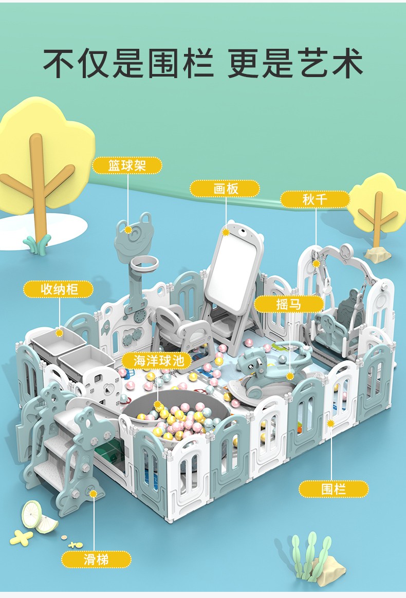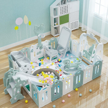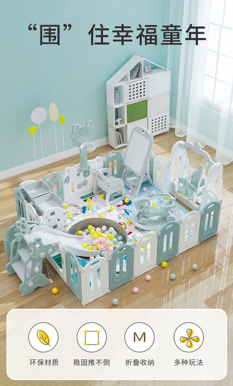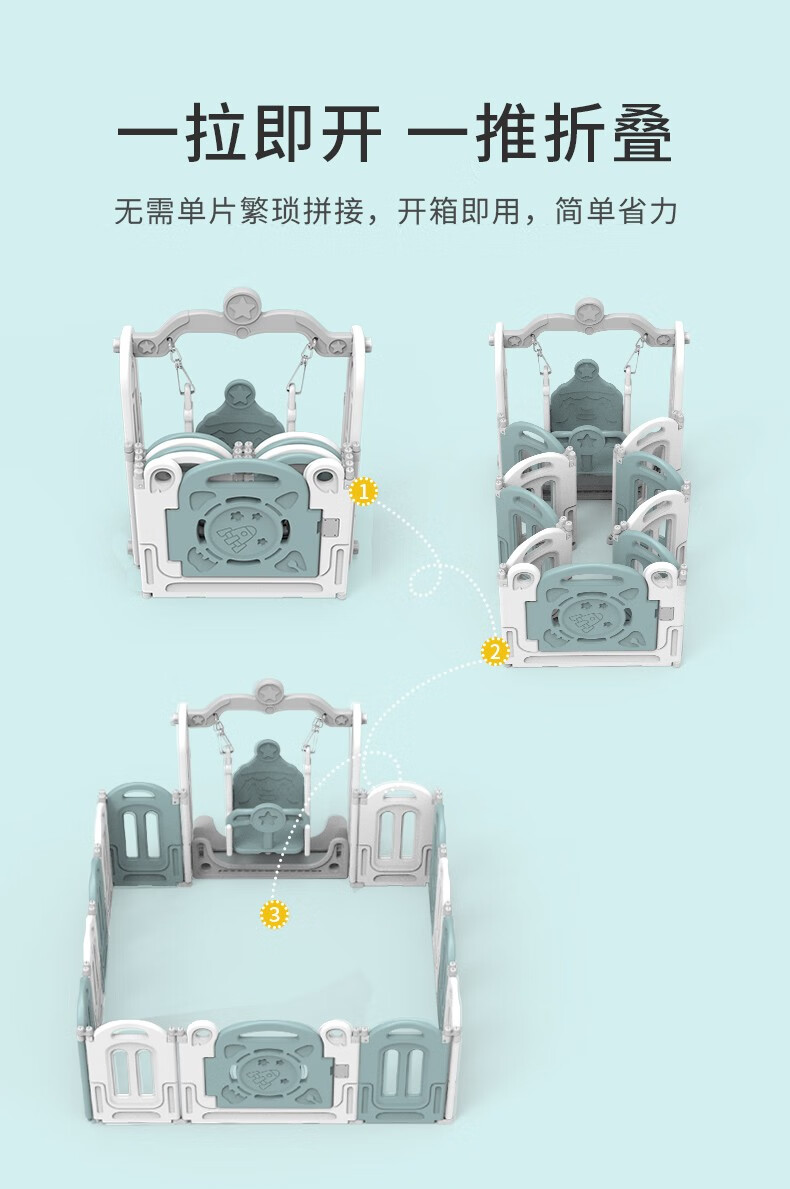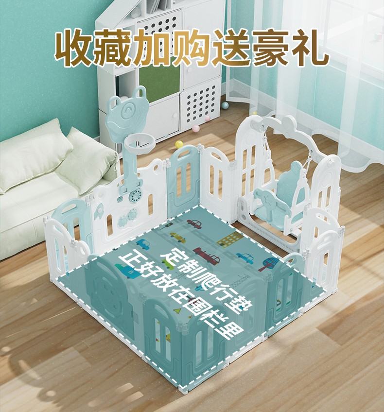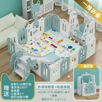 Children's playpen Baby indoor household Baby playground Upstream playpen crawling mat fence toddler safety 1.8m × 1.8m+swing+slide Green Blue [image price and brand quotation]-