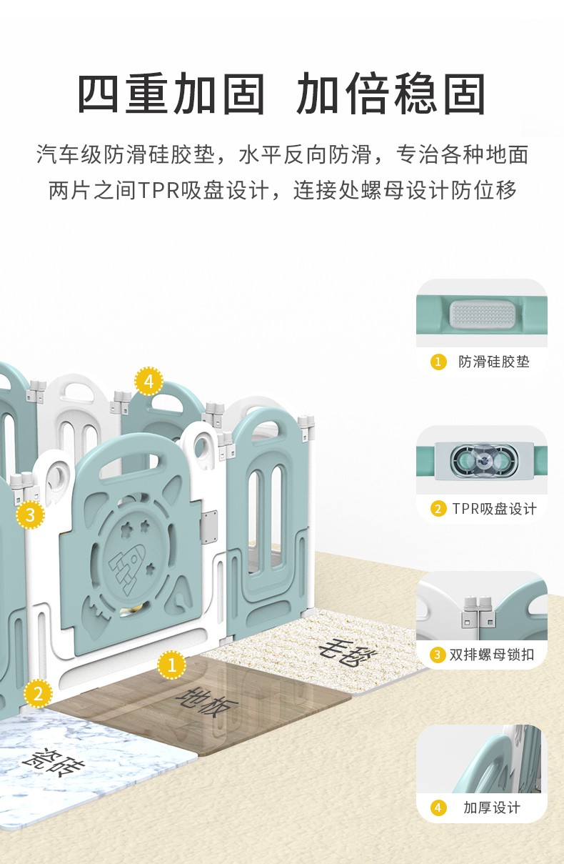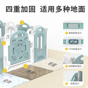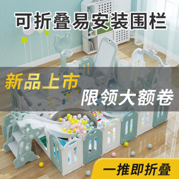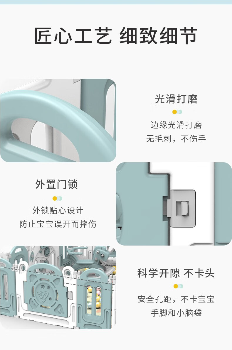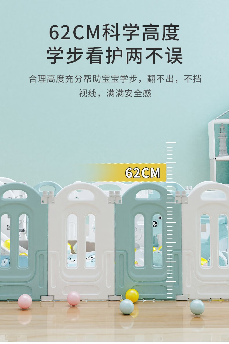 Children's playpen Baby indoor household Baby playground Upstream playpen crawling mat fence toddler safety 1.8m × 1.8m+swing+slide Green Blue [image price and brand quotation]-