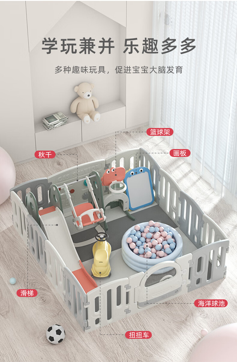 Manlong Baby Playpen Ground Safety Indoor Children's Game Playpen Indoor Climbing Pad Indoor+PU Pad (180 * 150cm)+Ocean Ball [Image Price Brand Quotation]-
