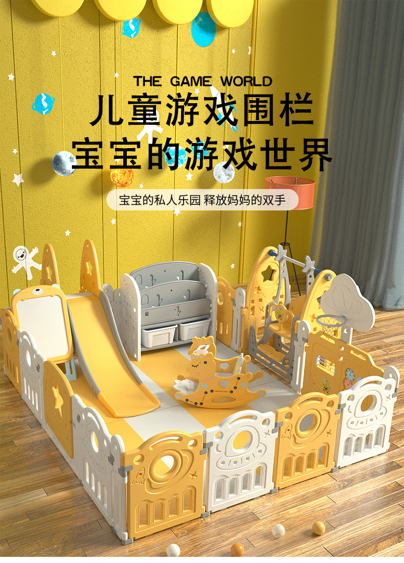 Children's playpen Baby indoor home crawling mat anti safety Baby ground learning safety fence playpen 2x2.5 meter indoor swing+slide+rocking chair+ball pool [Image price brand quotation]-